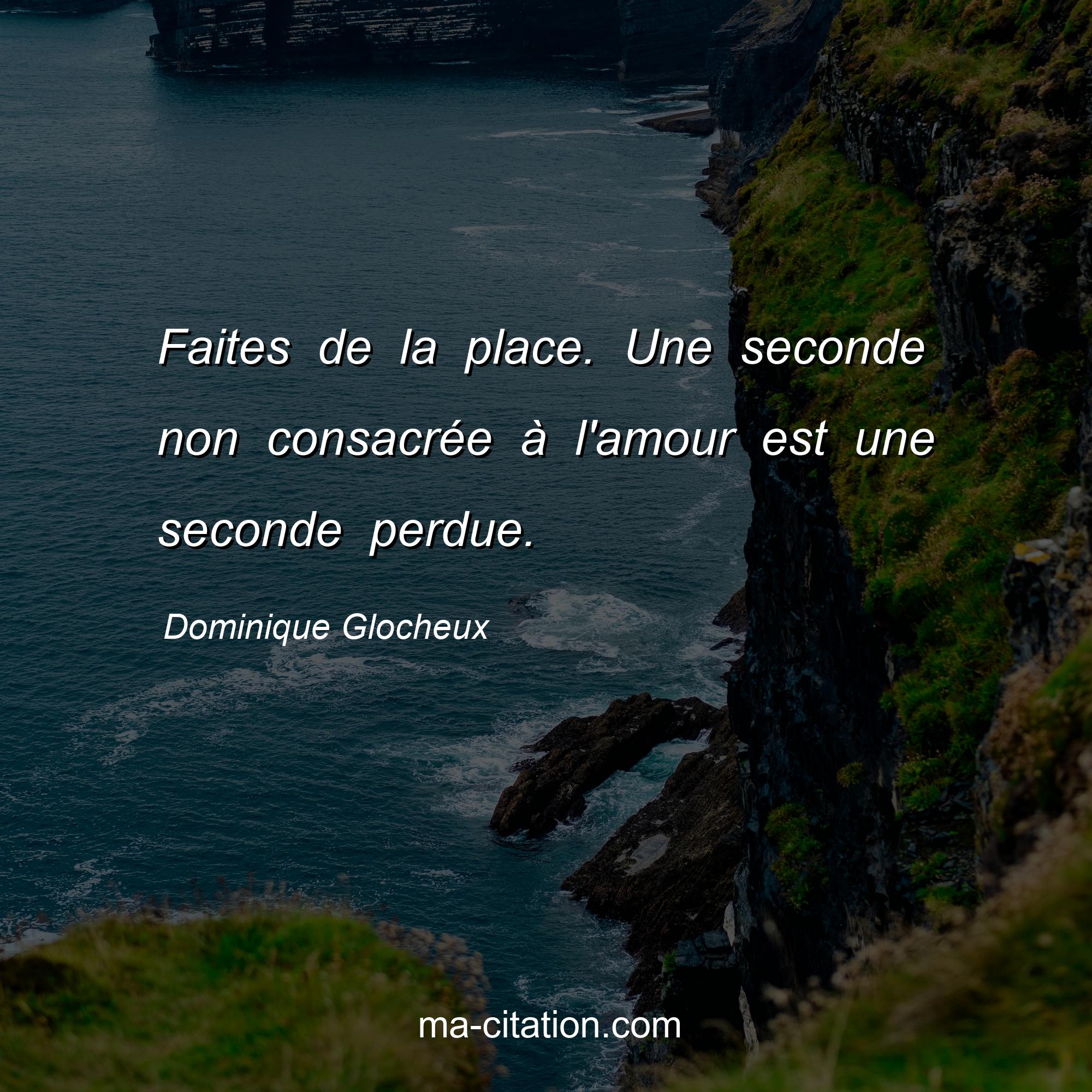 Dominique Glocheux est l'auteur de la citation sur la vie "Faites de la place. Une seconde non consacrée à l'amour est une seconde perdue.".