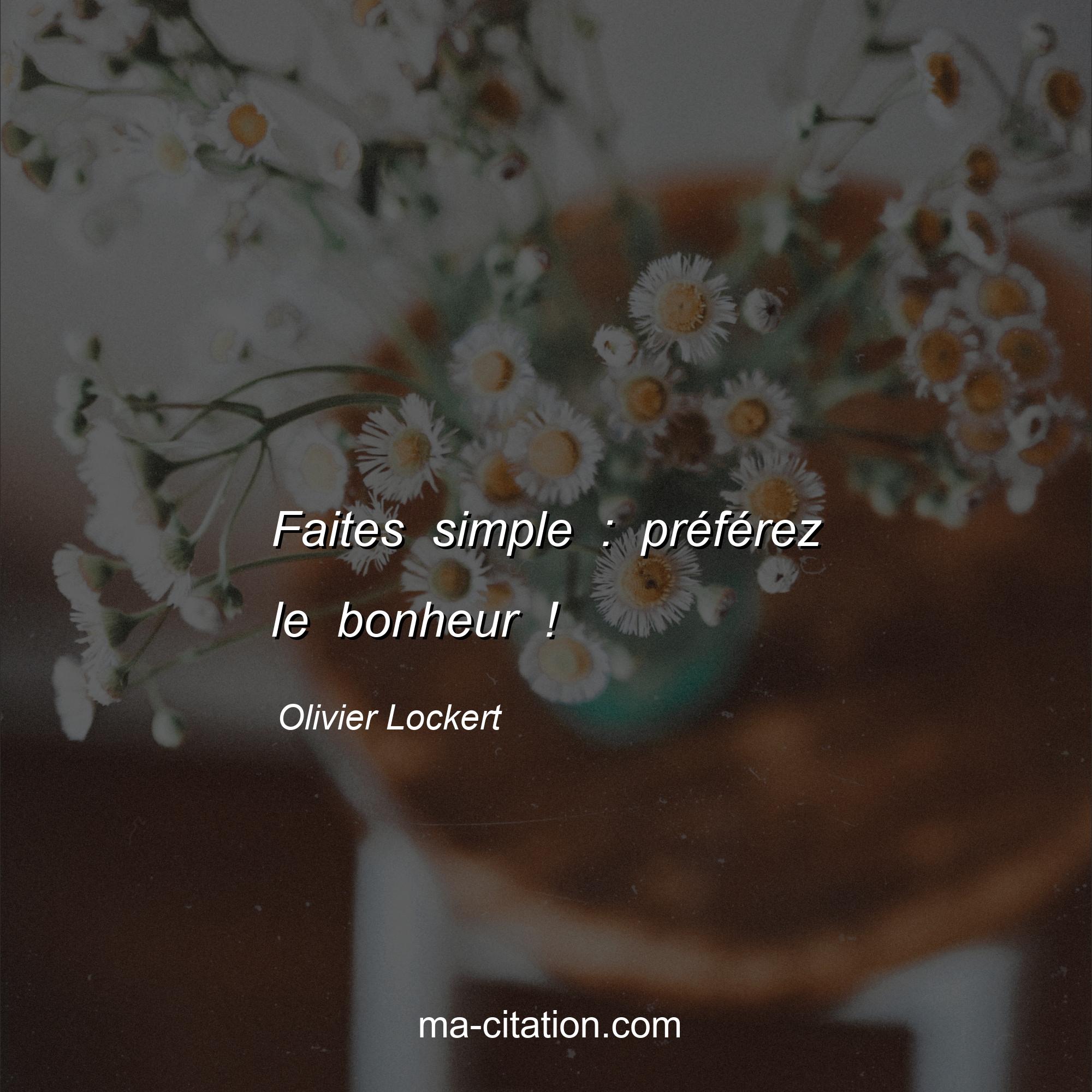 Olivier Lockert est l'auteur de la citation sur la vie "Faites simple : préférez le bonheur !".