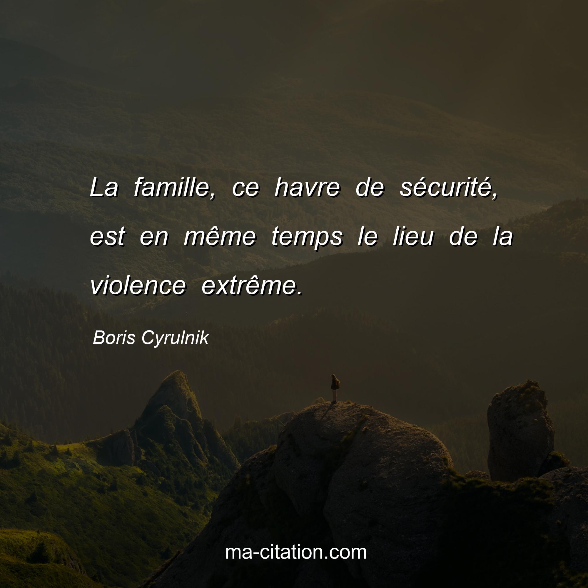 Citation sur la vie de Boris Cyrulnik :La famille, ce havre de sécurité, est en même temps le lieu de la violence extrême.