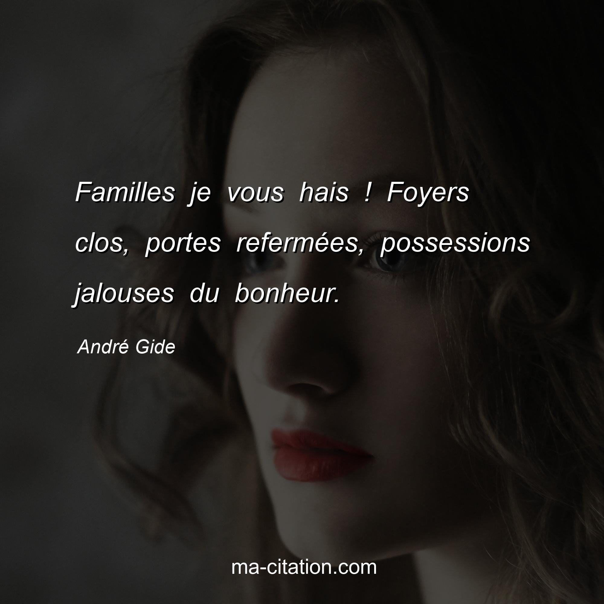 Citation sur la vie d'André Gide :Familles je vous hais ! Foyers clos, portes refermées, possessions jalouses du bonheur.