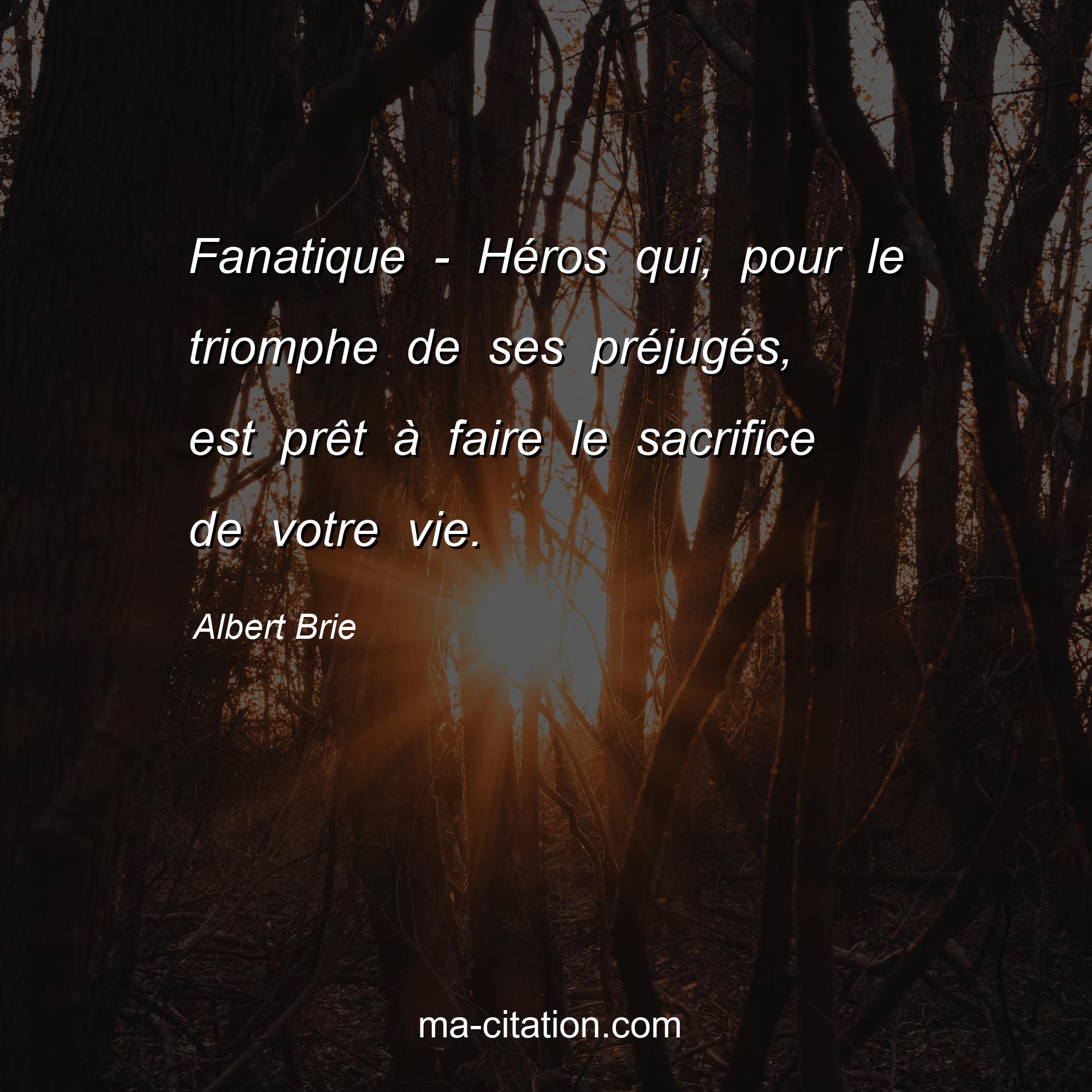 Albert Brie est l'auteur de la citation sur la vie "Fanatique - Héros qui, pour le triomphe de ses préjugés, est prêt à faire le sacrifice de votre vie.".