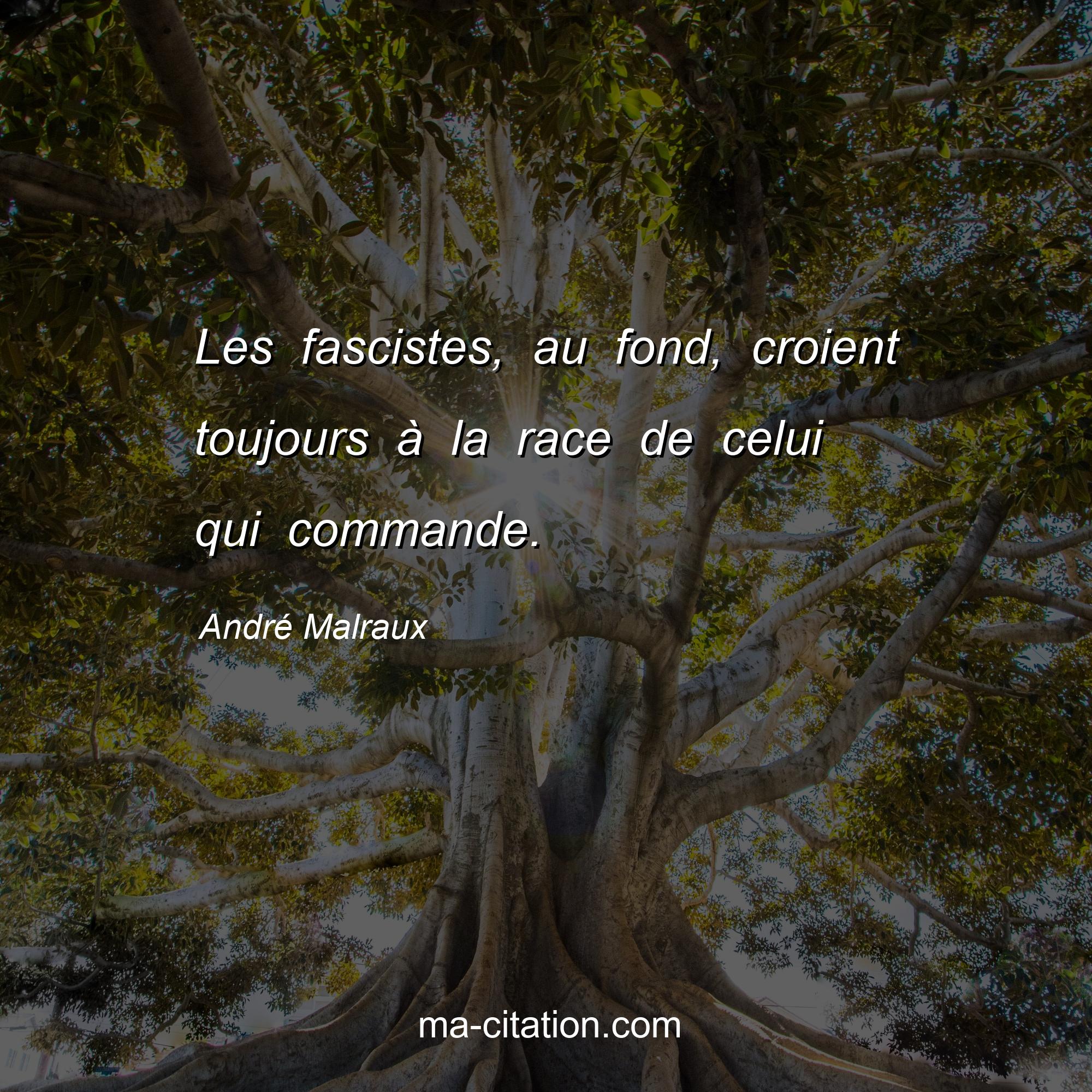 Citation sur la vie d'André Malraux :Les fascistes, au fond, croient toujours à la race de celui qui commande.