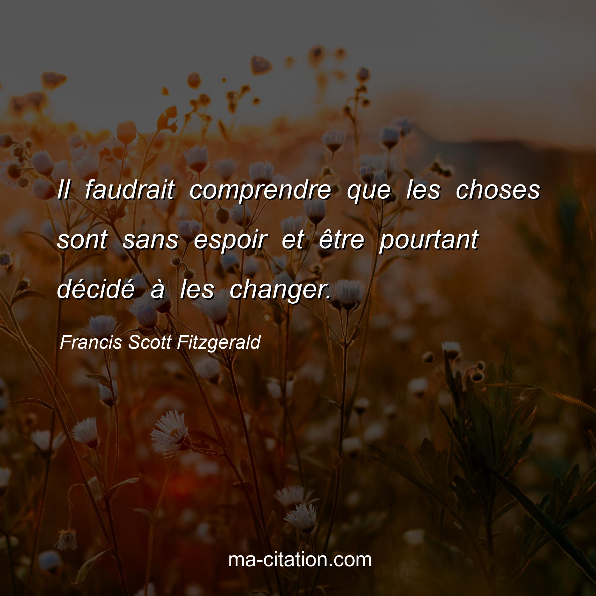 Citation sur la vie de Francis Scott Fitzgerald :Il faudrait comprendre que les choses sont sans espoir et être pourtant décidé à les changer.