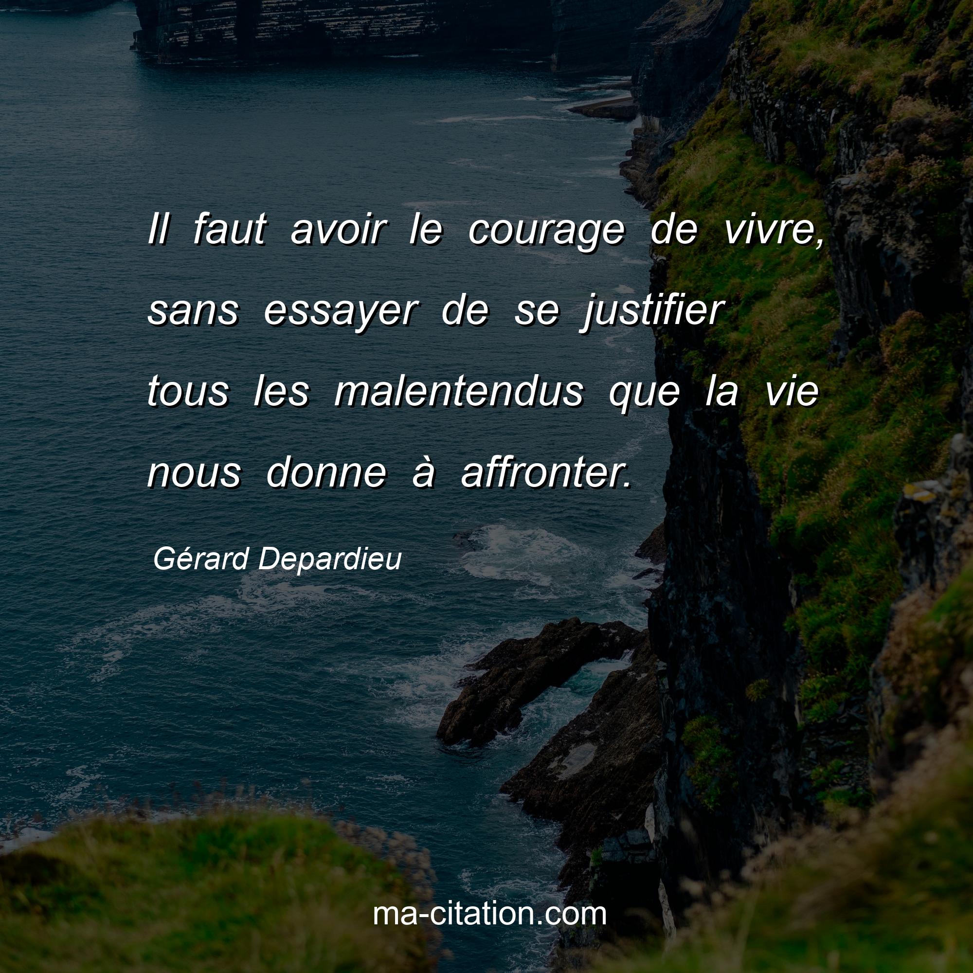 Citation sur la vie de Gérard Depardieu :Il faut avoir le courage de vivre, sans essayer de se justifier tous les malentendus que la vie nous donne à affronter.