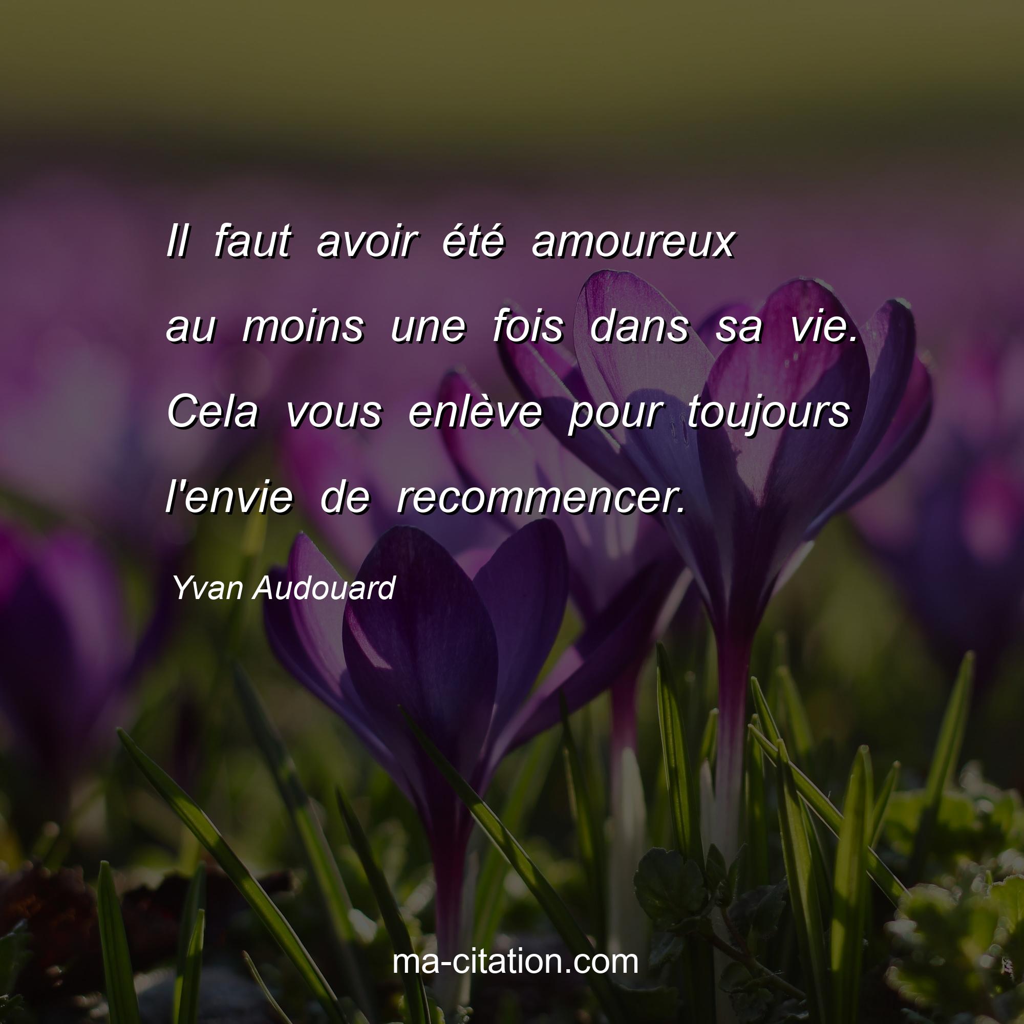 Citation sur la vie de Yvan Audouard :Il faut avoir été amoureux au moins une fois dans sa vie. Cela vous enlève pour toujours l'envie de recommencer.