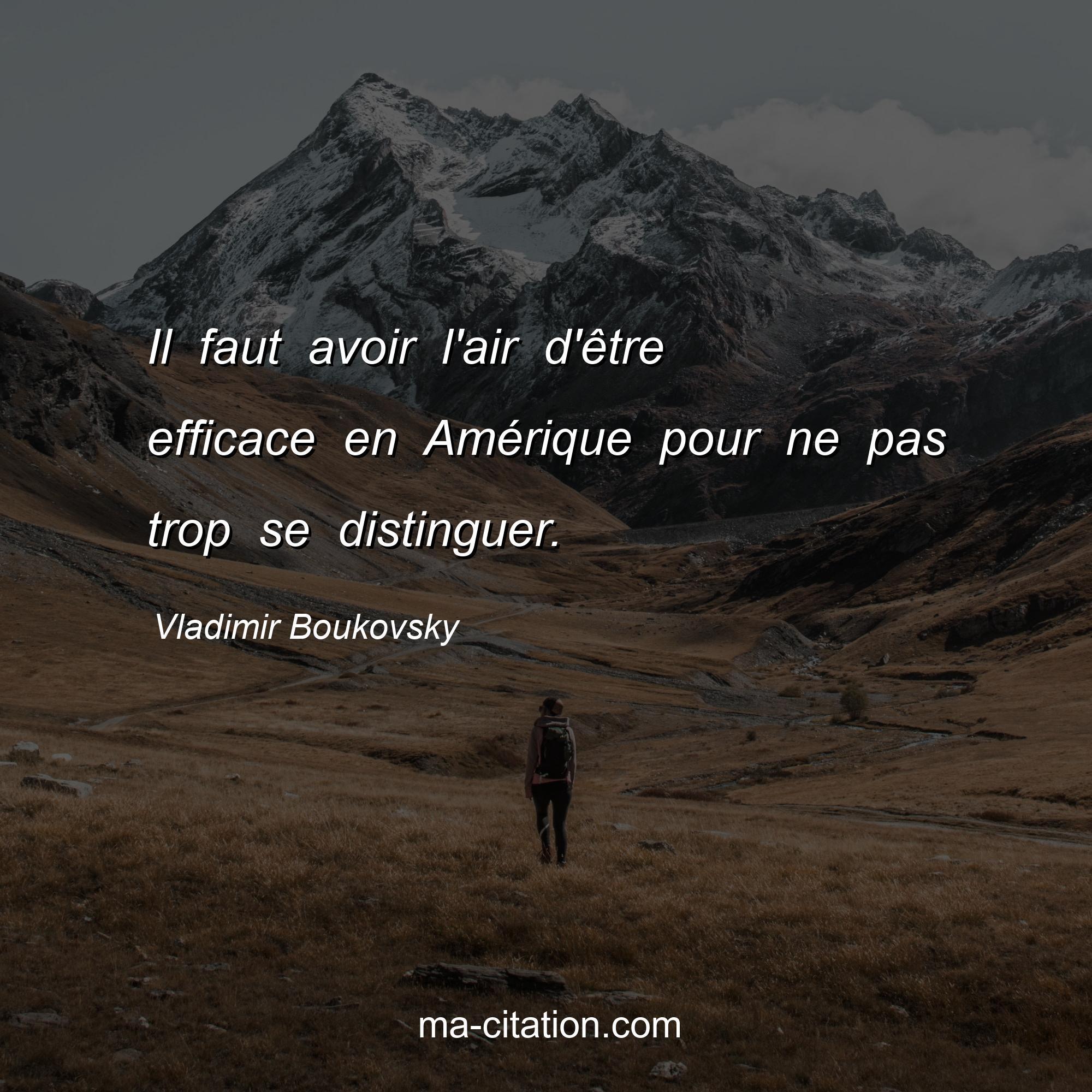 Citation sur la vie de Vladimir Boukovsky :Il faut avoir l'air d'être efficace en Amérique pour ne pas trop se distinguer.
