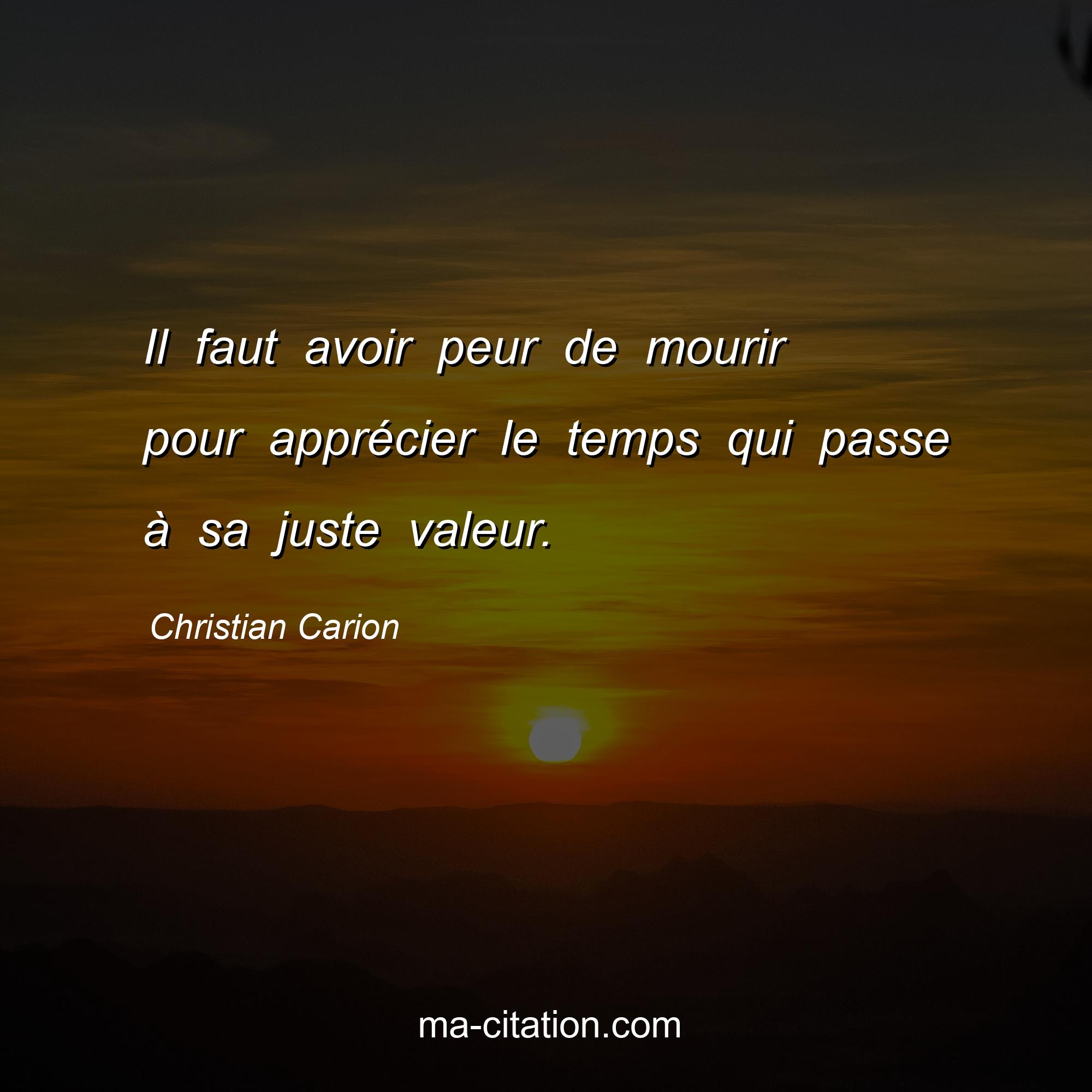 Christian Carion est l'auteur de la citation sur la vie "Il faut avoir peur de mourir pour apprécier le temps qui passe à sa juste valeur.".