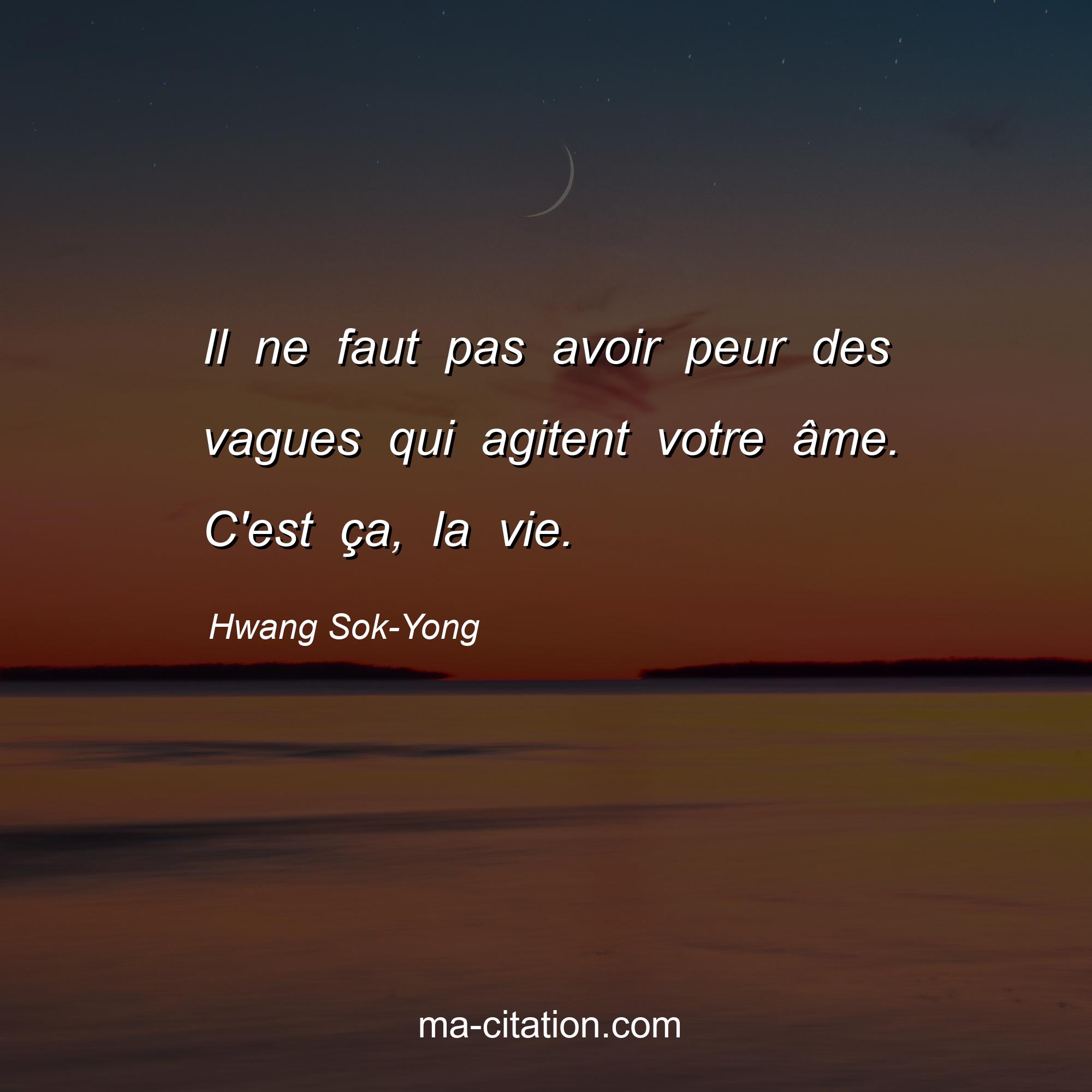 Citation sur la vie de Hwang Sok-Yong :Il ne faut pas avoir peur des vagues qui agitent votre âme. C'est ça, la vie.