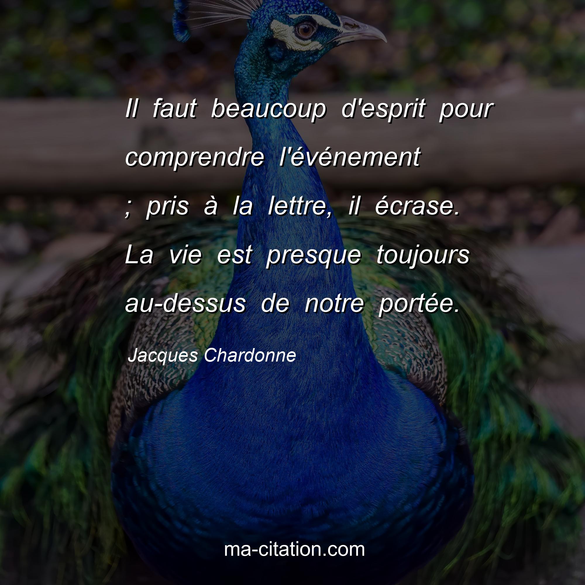 Citation sur la vie de Jacques Chardonne :Il faut beaucoup d'esprit pour comprendre l'événement ; pris à la lettre, il écrase. La vie est presque toujours au-dessus de notre portée.