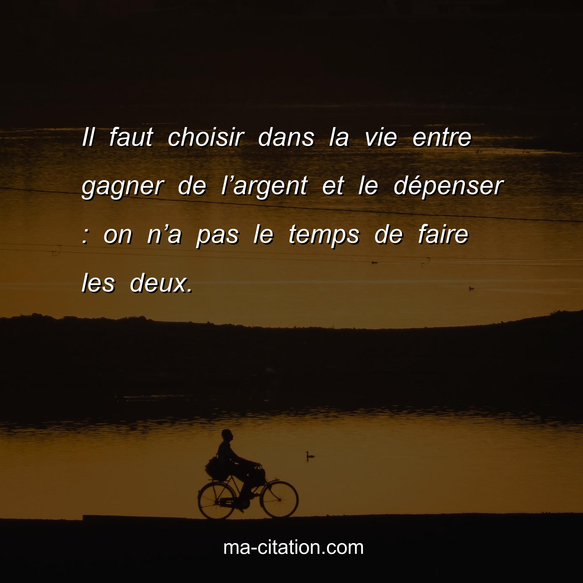 Citation sur la vie :Il faut choisir dans la vie entre gagner de l’argent et le dépenser : on n’a pas le temps de faire les deux.