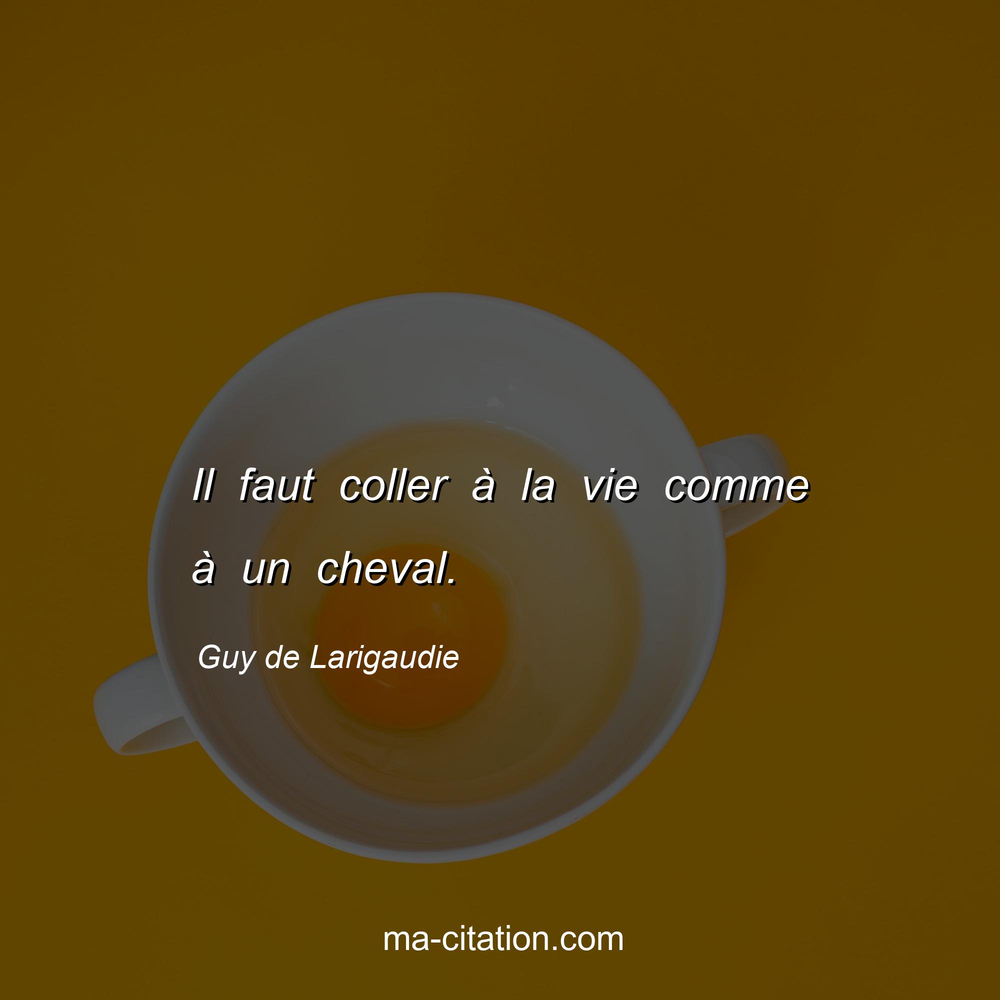 Guy de Larigaudie est l'auteur de la citation sur la vie "Il faut coller à la vie comme à un cheval.".