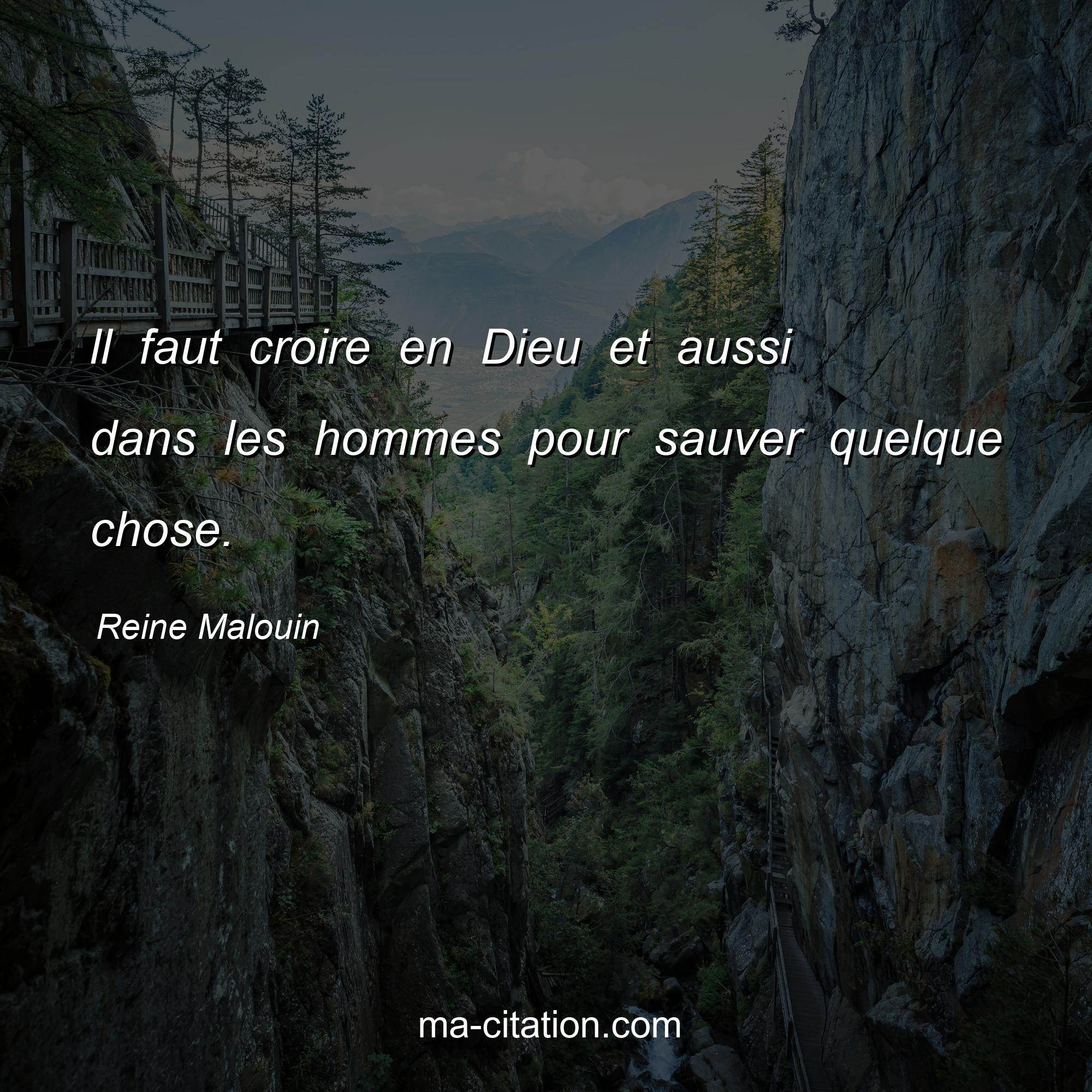 Reine Malouin est l'auteur de la citation sur la vie "ll faut croire en Dieu et aussi dans les hommes pour sauver quelque chose.".