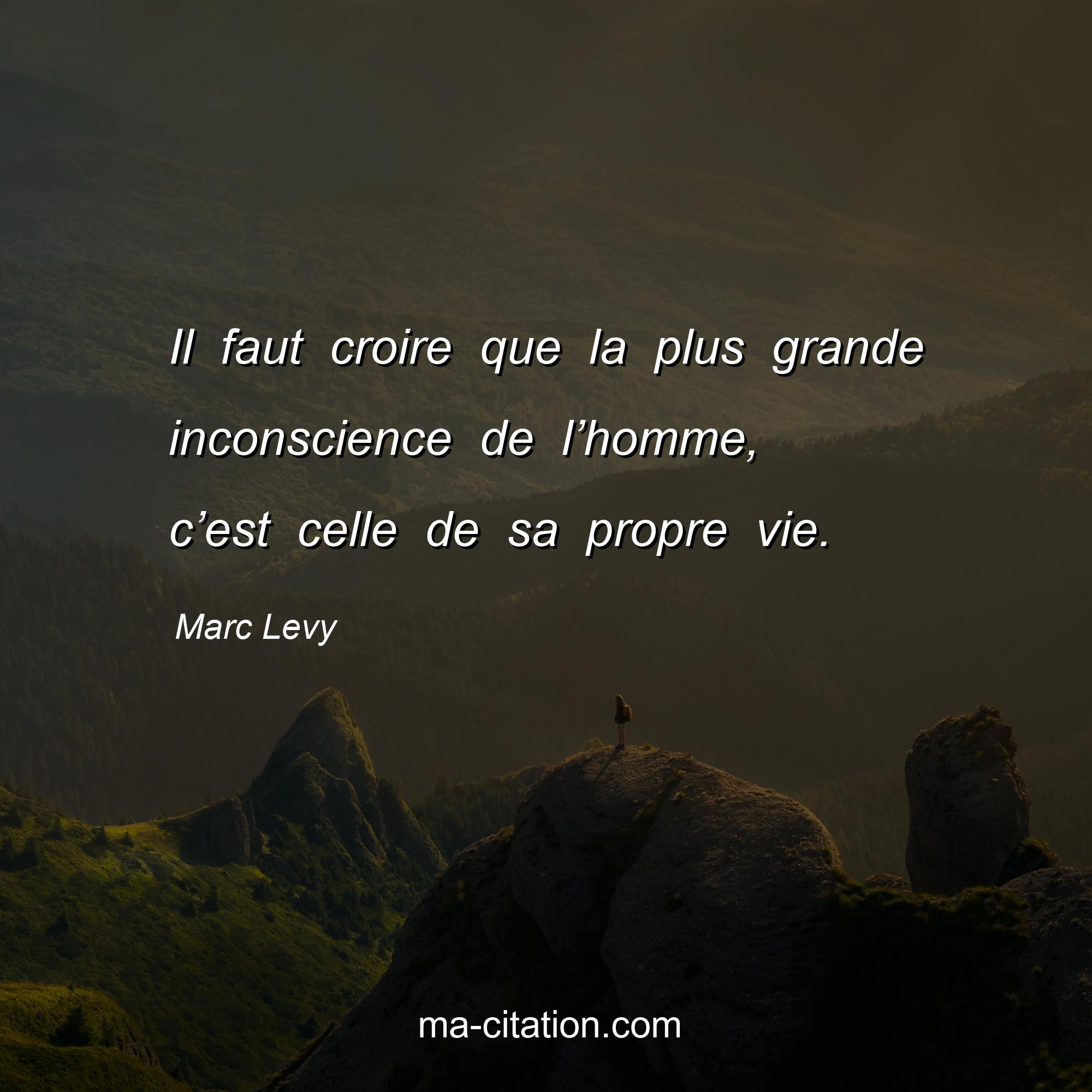 Citation sur la vie de Marc Levy :Il faut croire que la plus grande inconscience de l’homme, c’est celle de sa propre vie.