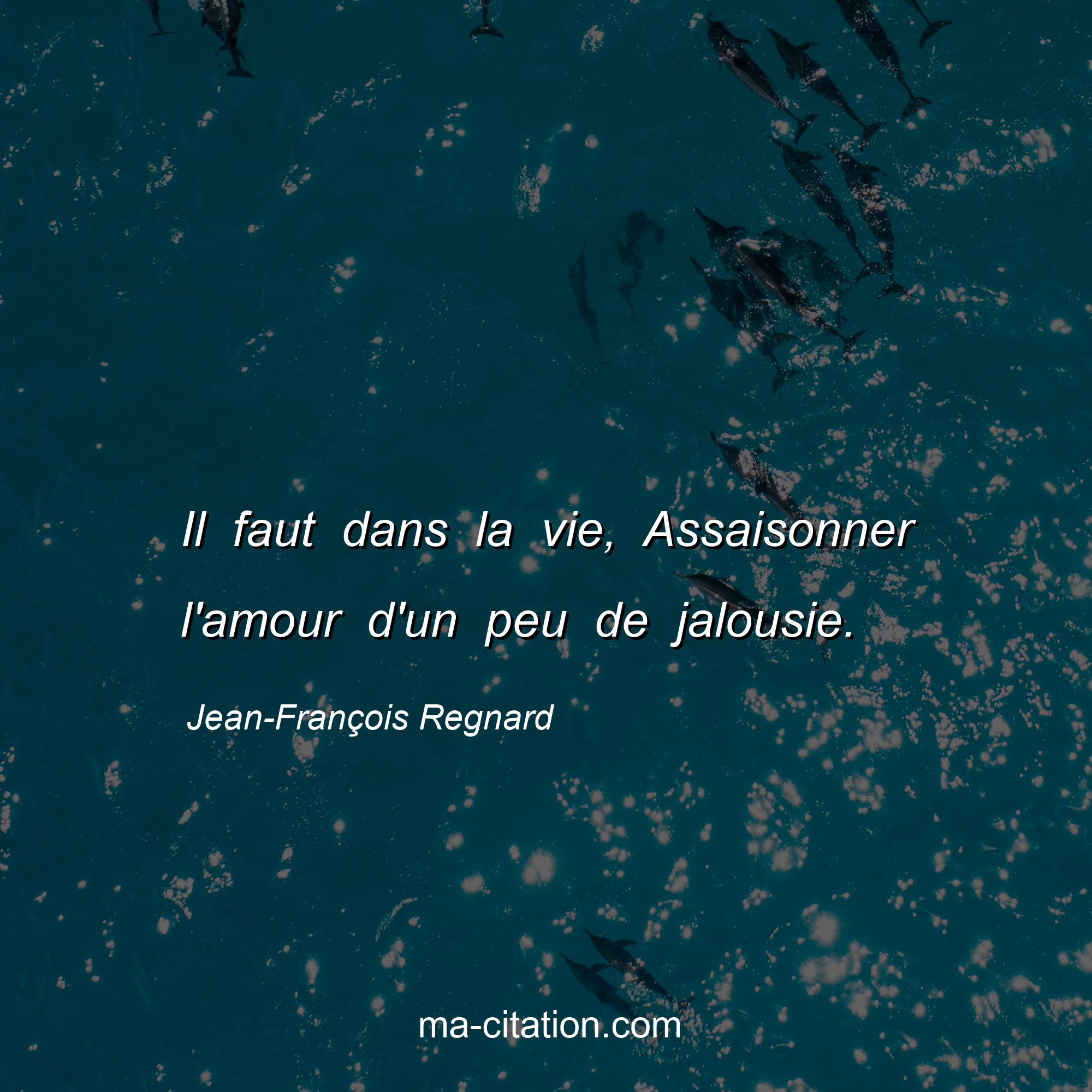 Jean-François Regnard est l'auteur de la citation sur la vie "Il faut dans la vie, Assaisonner l'amour d'un peu de jalousie.".