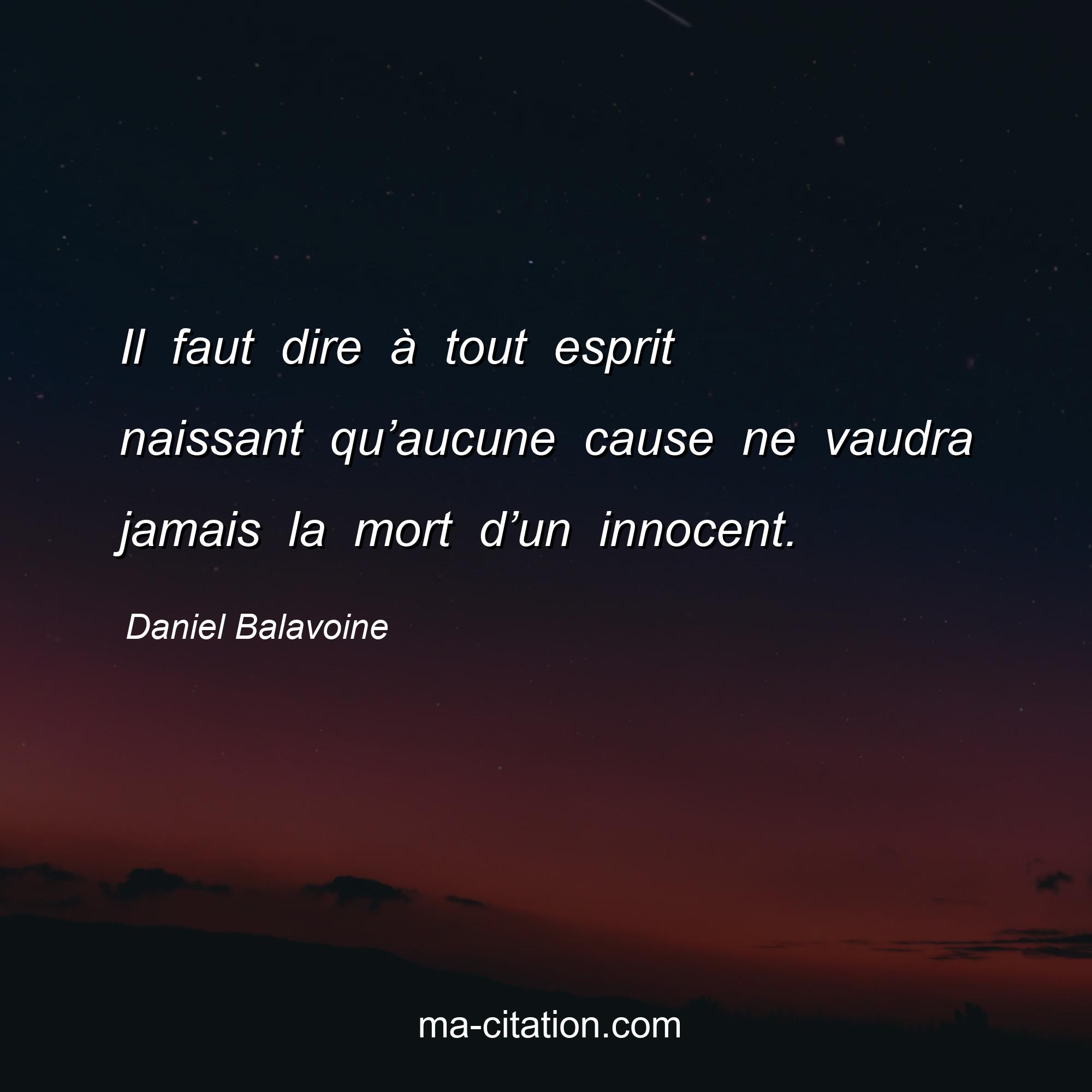 Citation sur la vie de Daniel Balavoine :Il faut dire à tout esprit naissant qu’aucune cause ne vaudra jamais la mort d’un innocent.