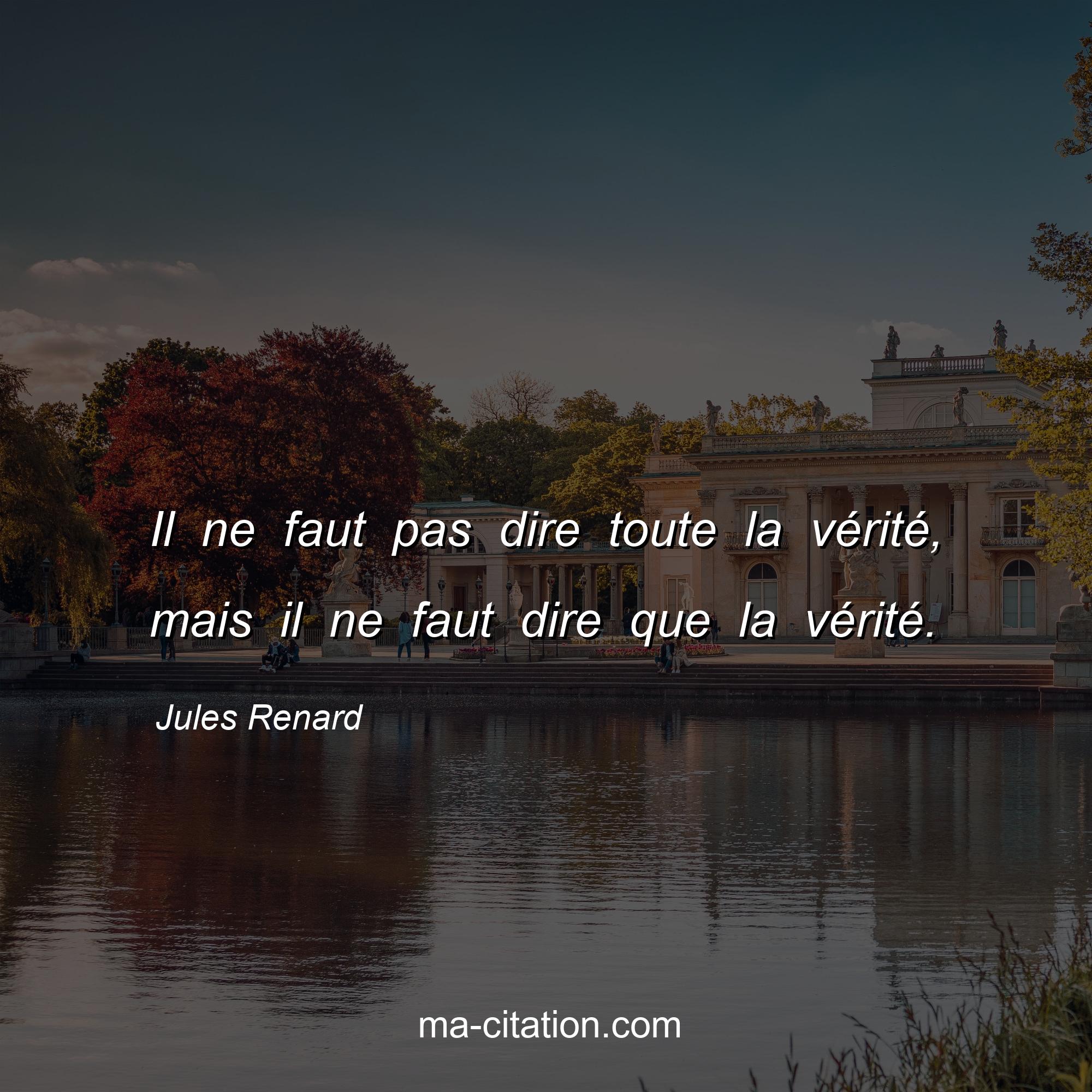 Citation sur la vie de Jules Renard :Il ne faut pas dire toute la vérité, mais il ne faut dire que la vérité.