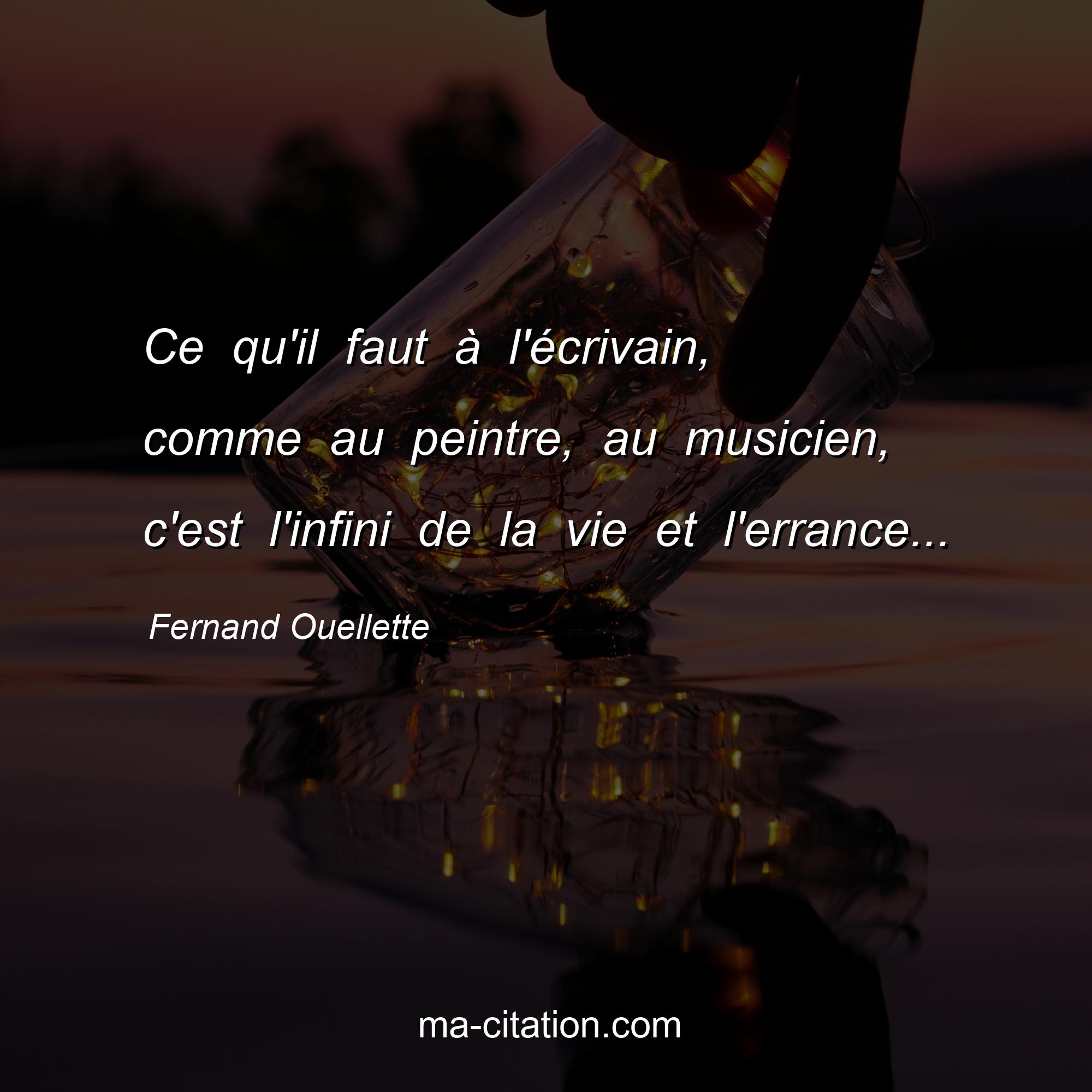 Citation sur la vie de Fernand Ouellette :Ce qu'il faut à l'écrivain, comme au peintre, au musicien, c'est l'infini de la vie et l'errance...