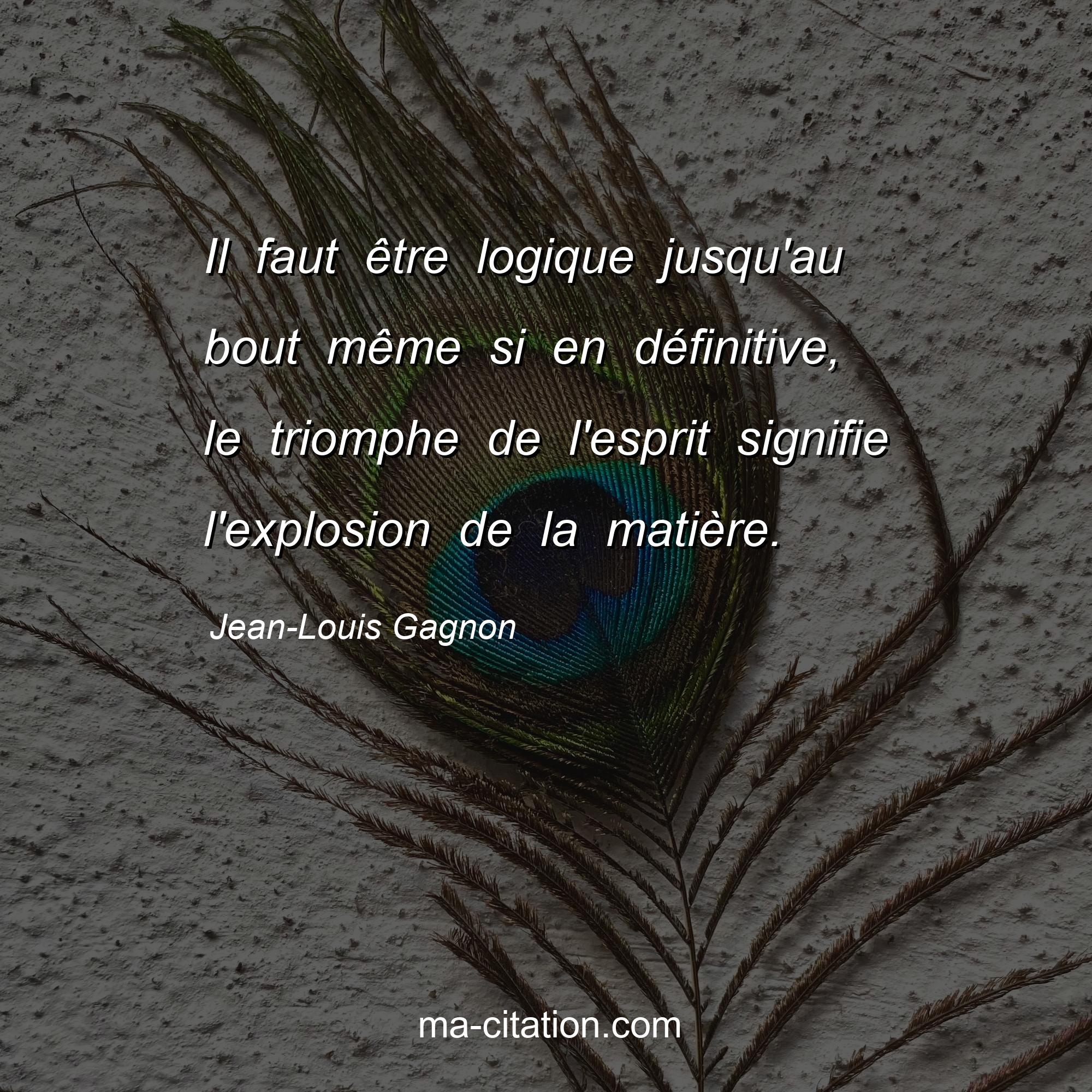 Citation sur la vie de Jean-Louis Gagnon :Il faut être logique jusqu'au bout même si en définitive, le triomphe de l'esprit signifie l'explosion de la matière.