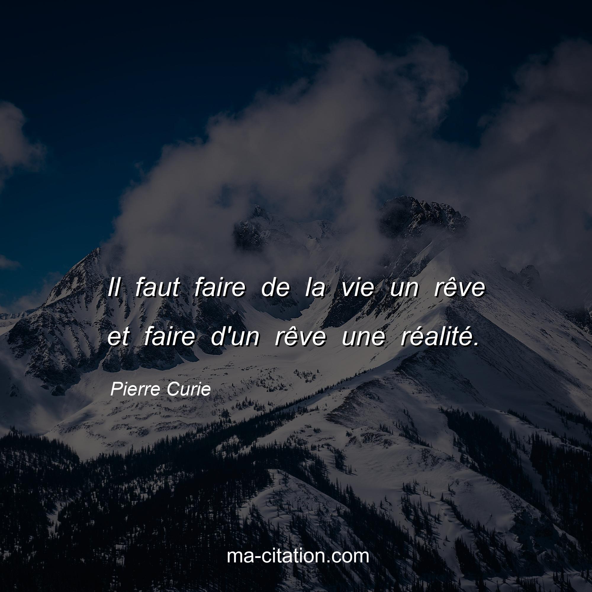 Pierre Curie est l'auteur de la citation sur la vie "Il faut faire de la vie un rêve et faire d'un rêve une réalité.".
