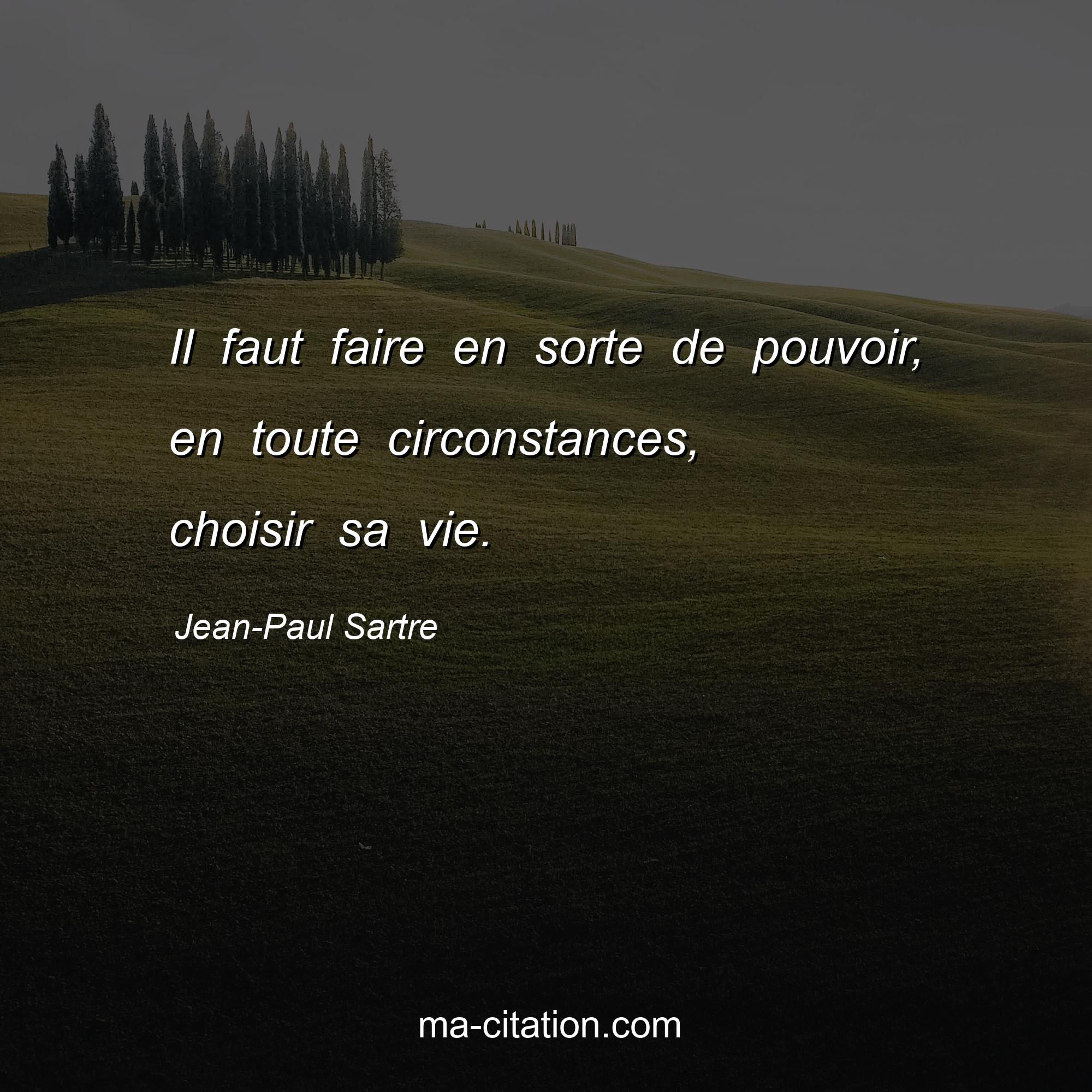 Citation sur la vie de Jean-Paul Sartre :Il faut faire en sorte de pouvoir, en toute circonstances, choisir sa vie.