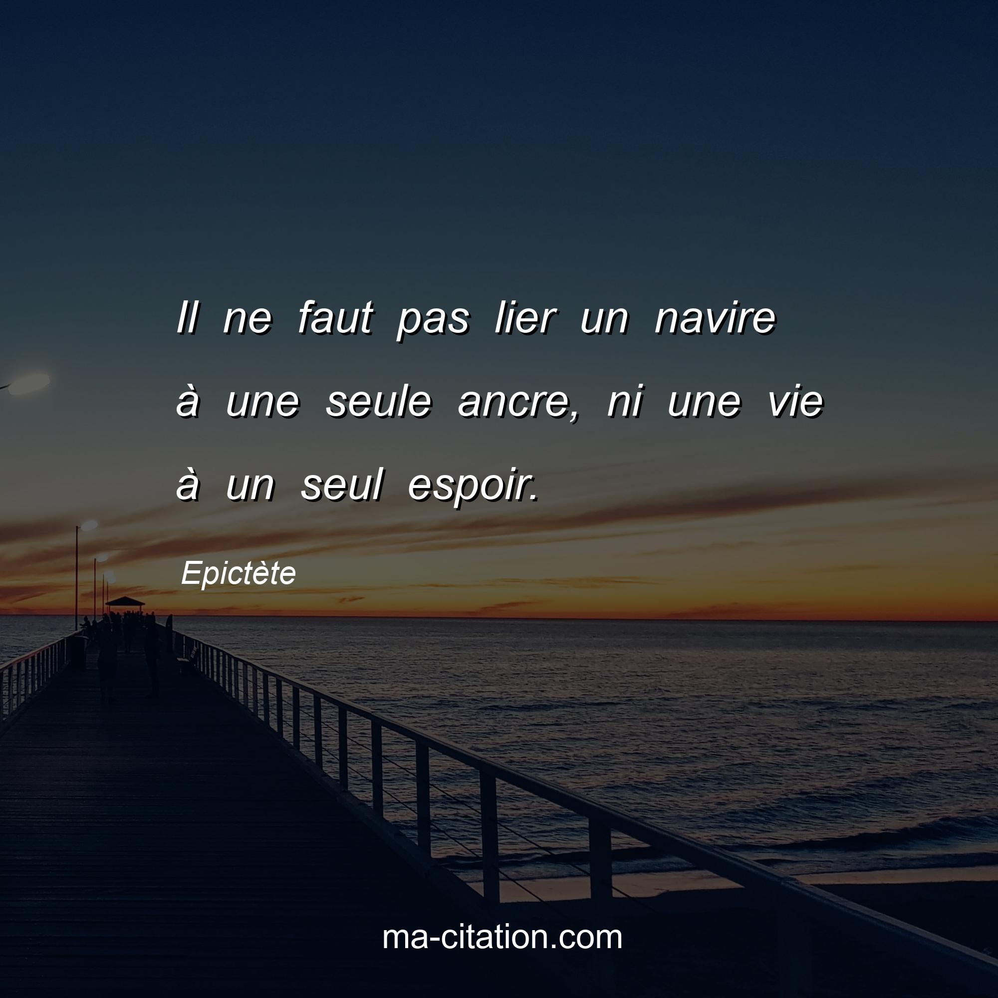 Citation sur la vie d'Epictète :Il ne faut pas lier un navire à une seule ancre, ni une vie à un seul espoir.
