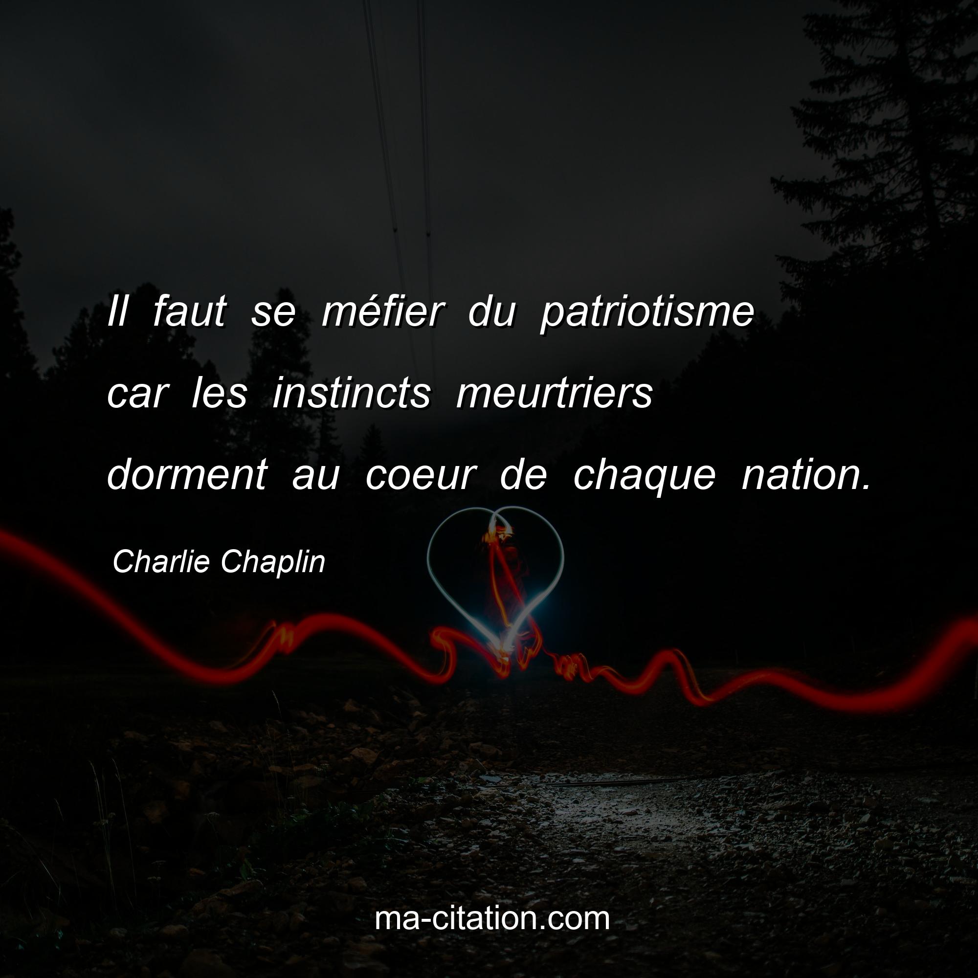 Citation sur la vie de Charlie Chaplin :Il faut se méfier du patriotisme car les instincts meurtriers dorment au coeur de chaque nation.