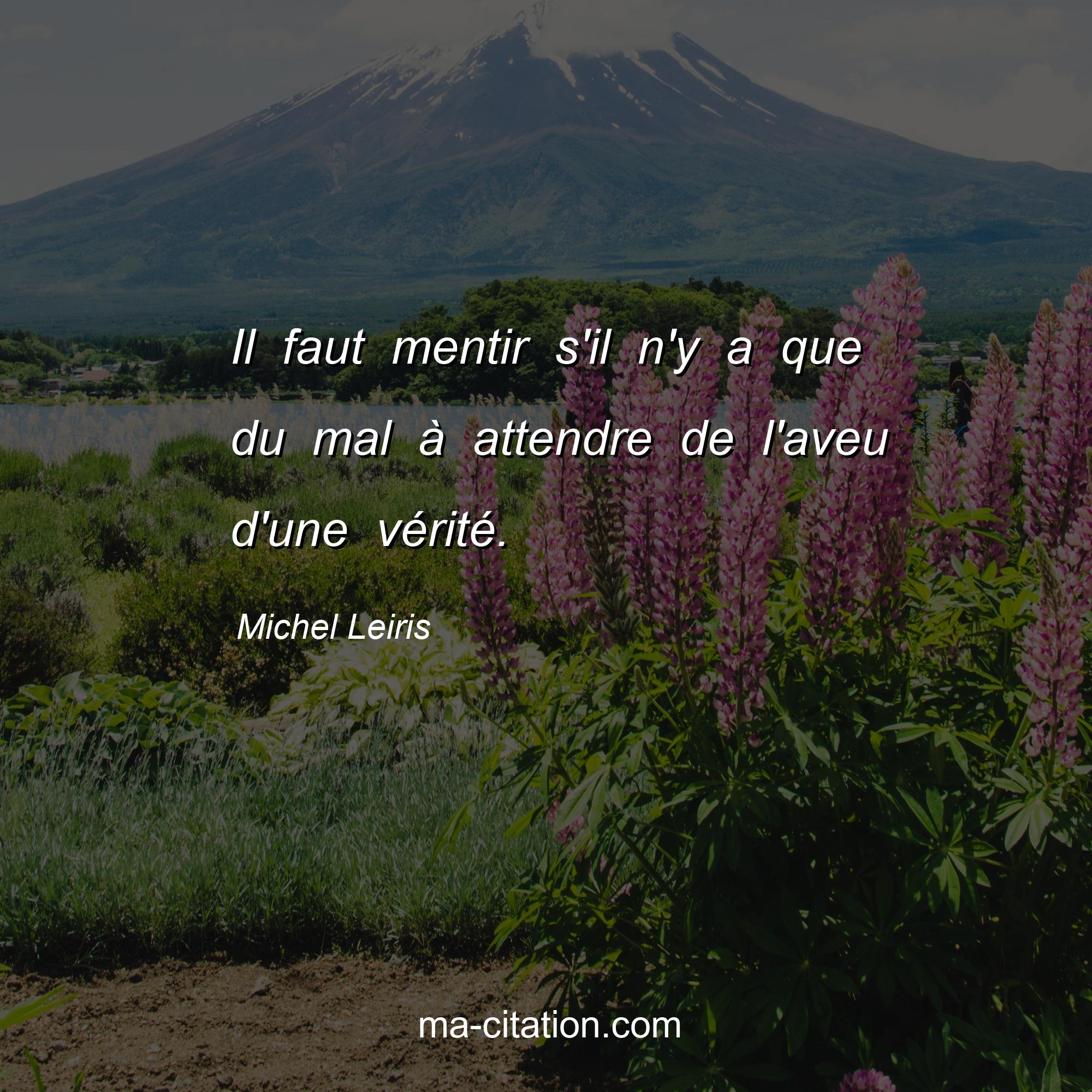 Citation sur la vie de Michel Leiris :Il faut mentir s'il n'y a que du mal à attendre de l'aveu d'une vérité.