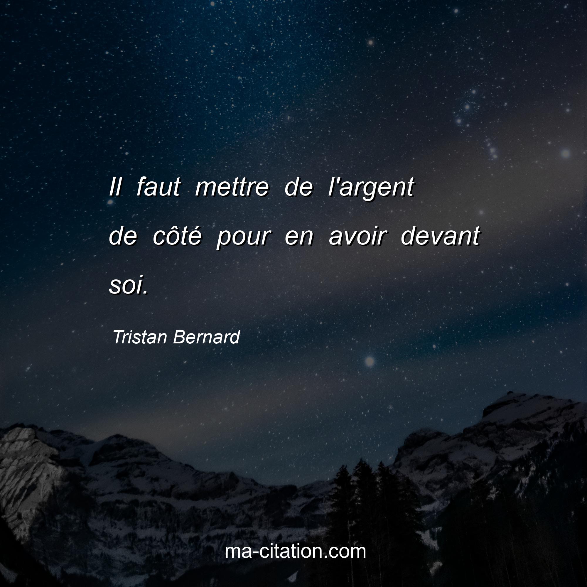 Citation sur la vie de Tristan Bernard :Il faut mettre de l'argent de côté pour en avoir devant soi.