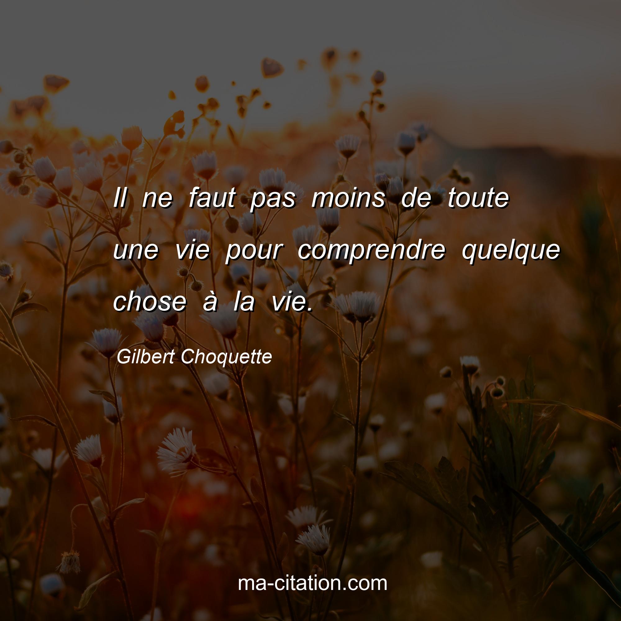 Citation sur la vie de Gilbert Choquette :Il ne faut pas moins de toute une vie pour comprendre quelque chose à la vie.