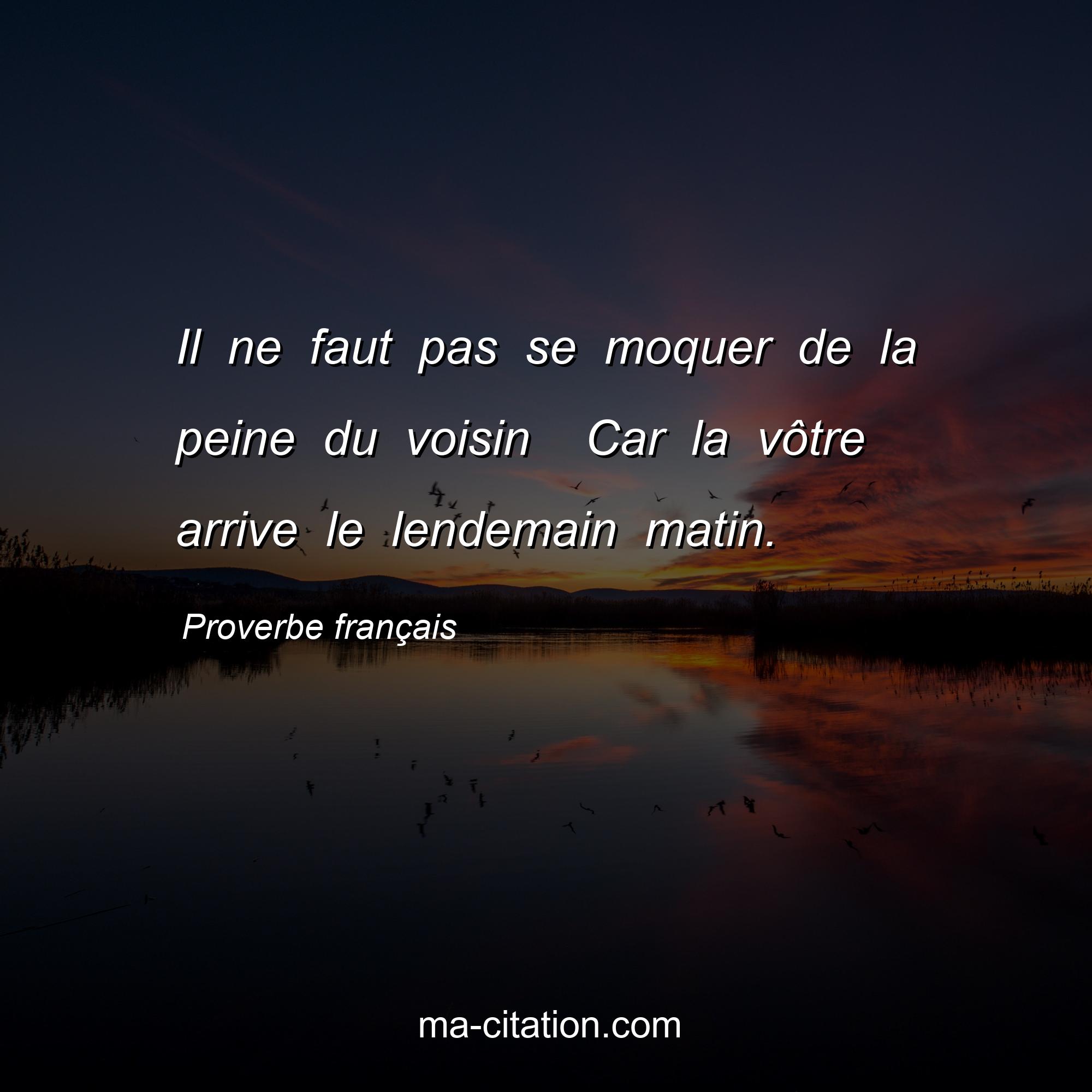 Proverbe français sur la vie :Il ne faut pas se moquer de la peine du voisin Car la vôtre arrive le lendemain matin.
