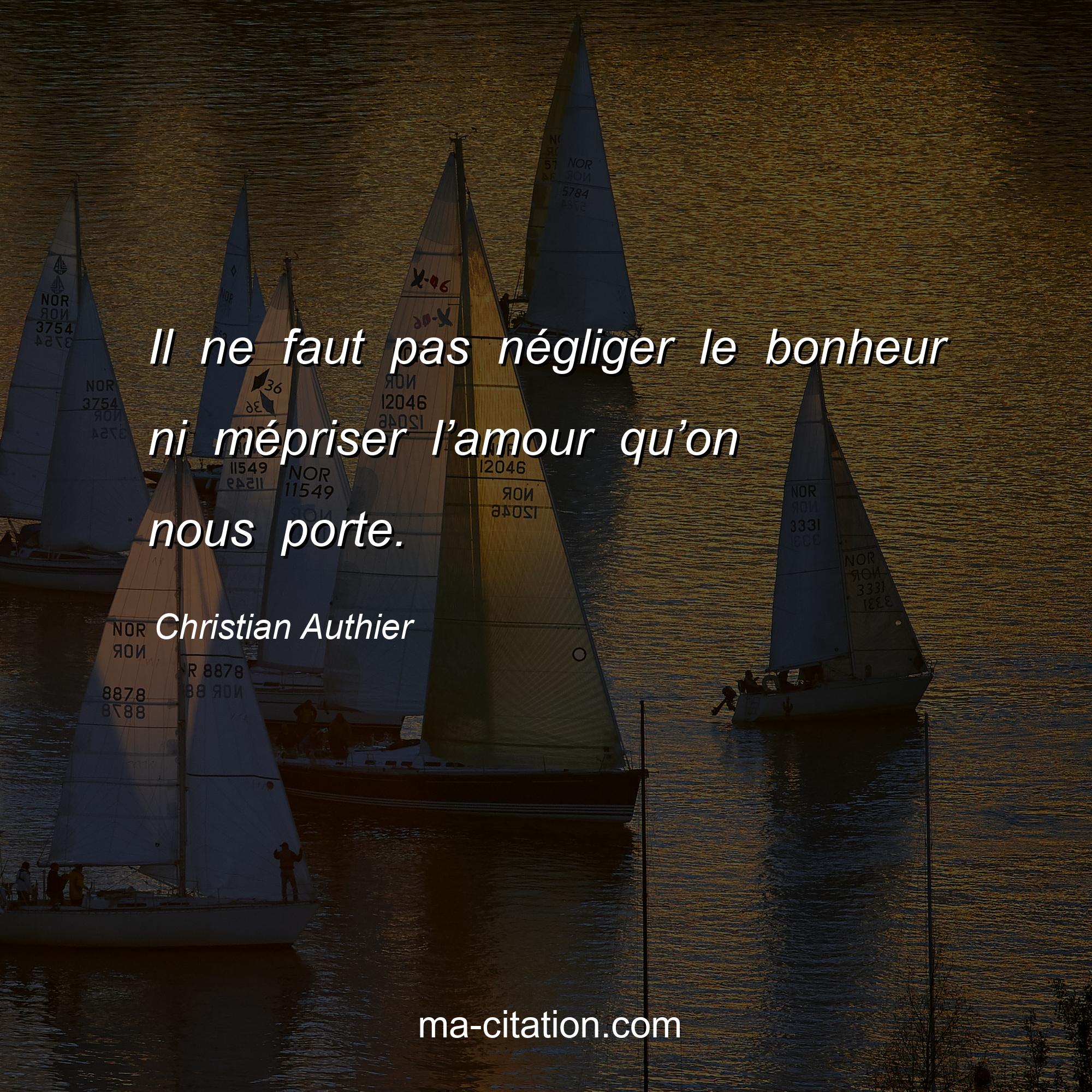 Christian Authier est l'auteur de la citation sur la vie "Il ne faut pas négliger le bonheur ni mépriser l’amour qu’on nous porte.".