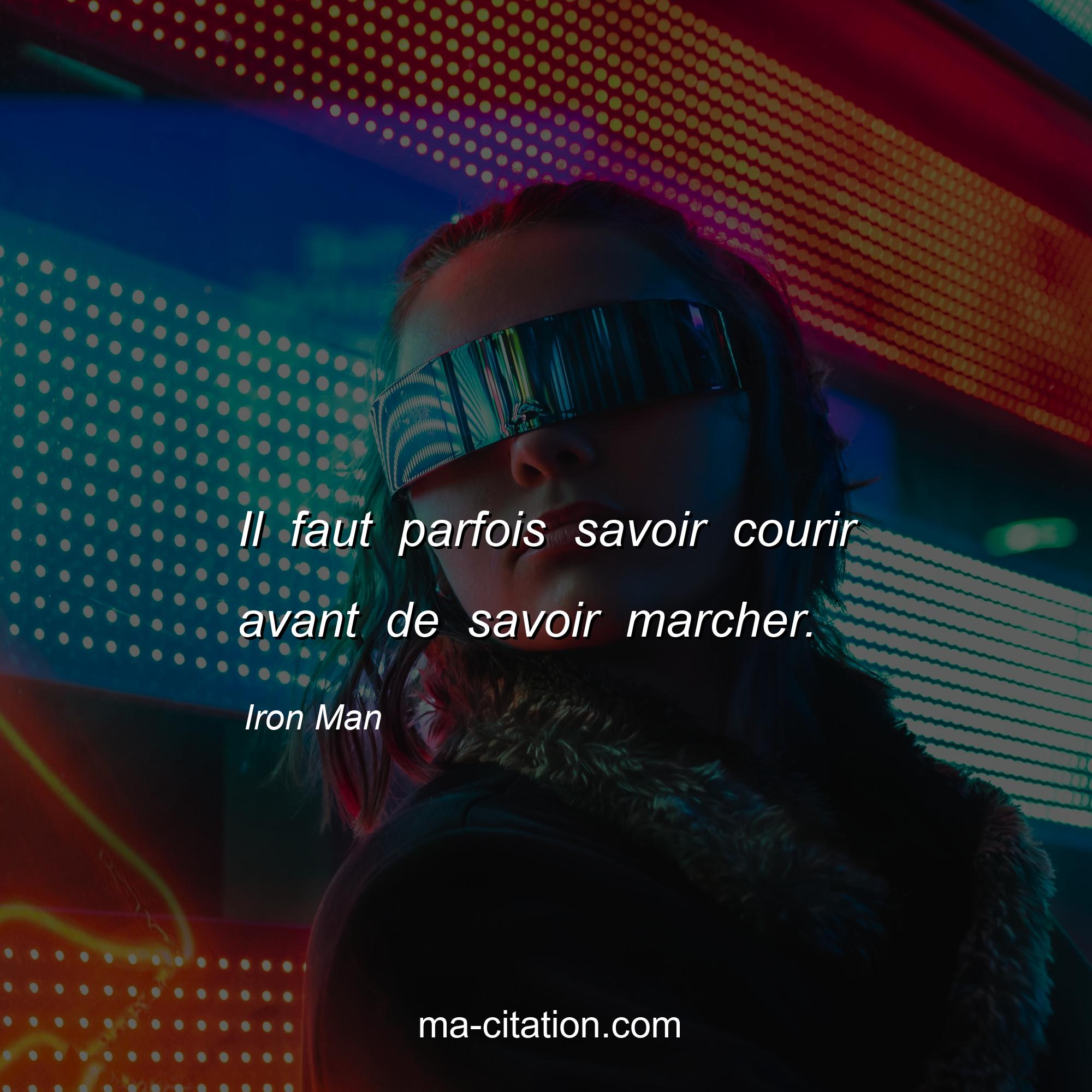 Citation sur la vie d'Iron Man :Il faut parfois savoir courir avant de savoir marcher.