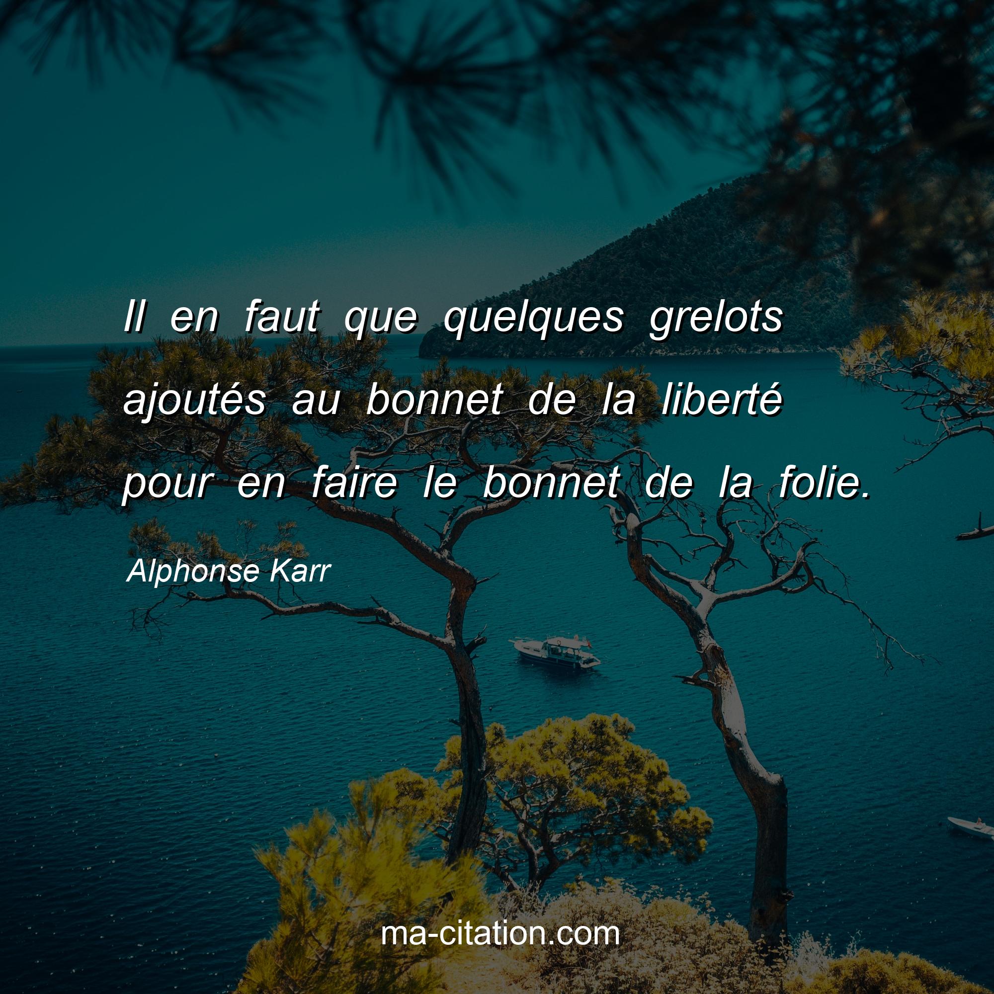 Citation sur la vie d'Alphonse Karr :Il en faut que quelques grelots ajoutés au bonnet de la liberté pour en faire le bonnet de la folie.