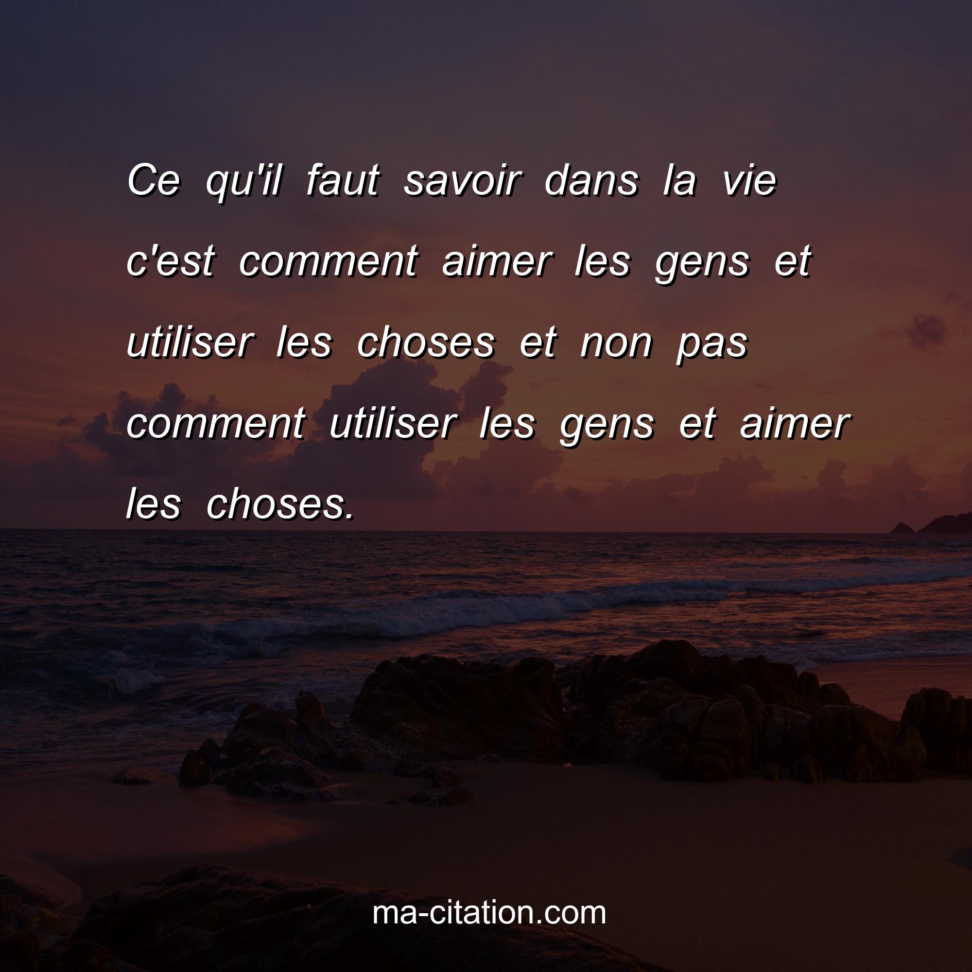 Ce qu'il faut savoir dans la vie c'est comment aimer les gens et utiliser les choses et non pas comment utiliser les gens et aimer les choses.