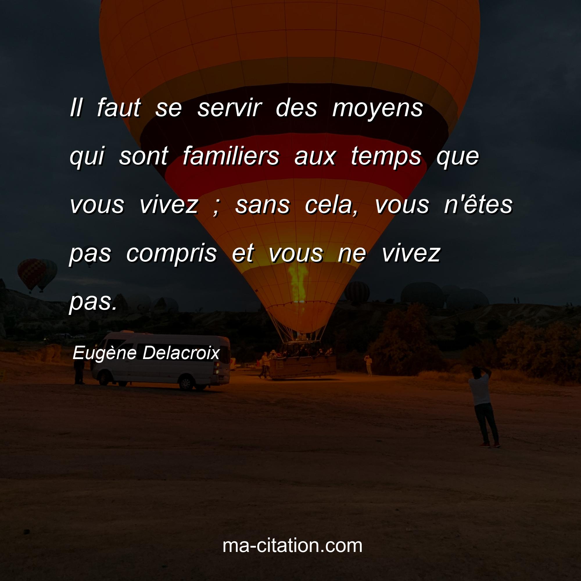 Citation sur la vie d'Eugène Delacroix :Il faut se servir des moyens qui sont familiers aux temps que vous vivez ; sans cela, vous n'êtes pas compris et vous ne vivez pas.