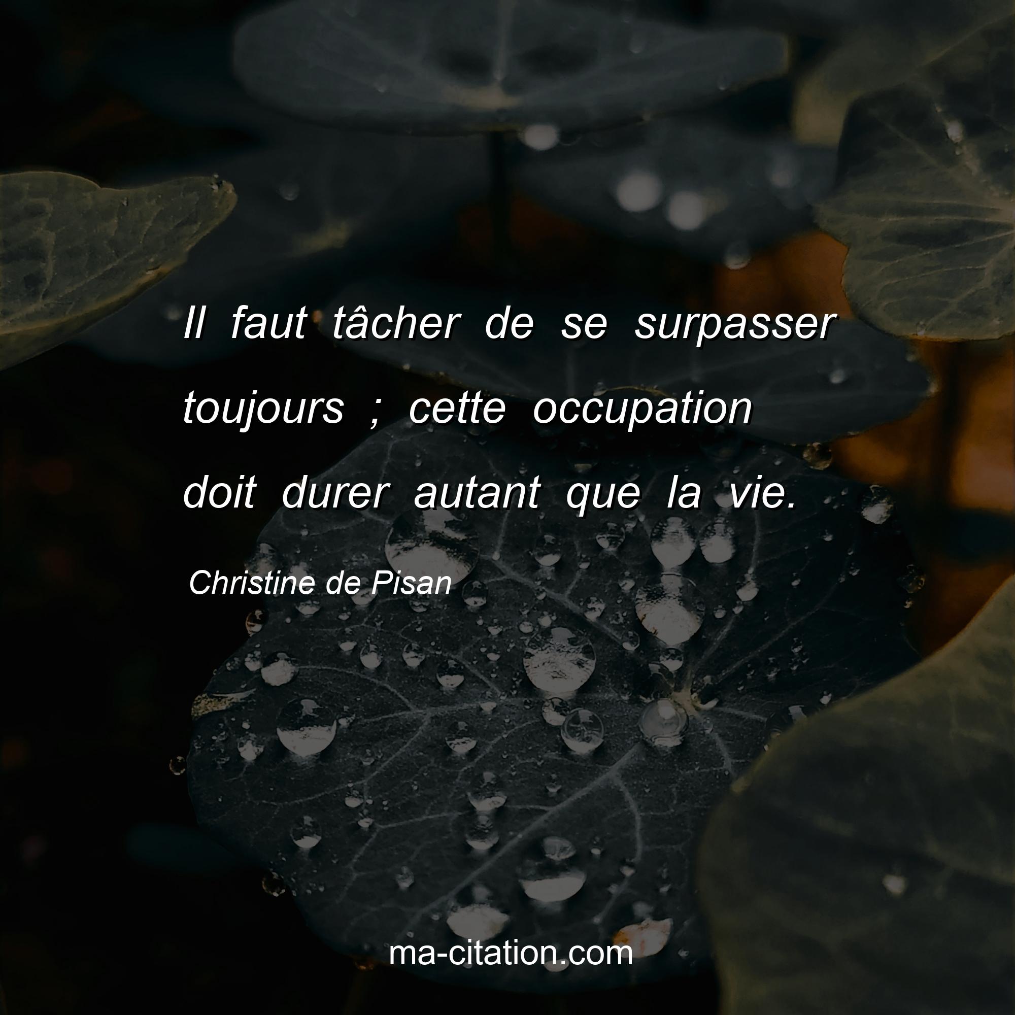 Citation sur la vie de Christine de Pisan :Il faut tâcher de se surpasser toujours ; cette occupation doit durer autant que la vie.