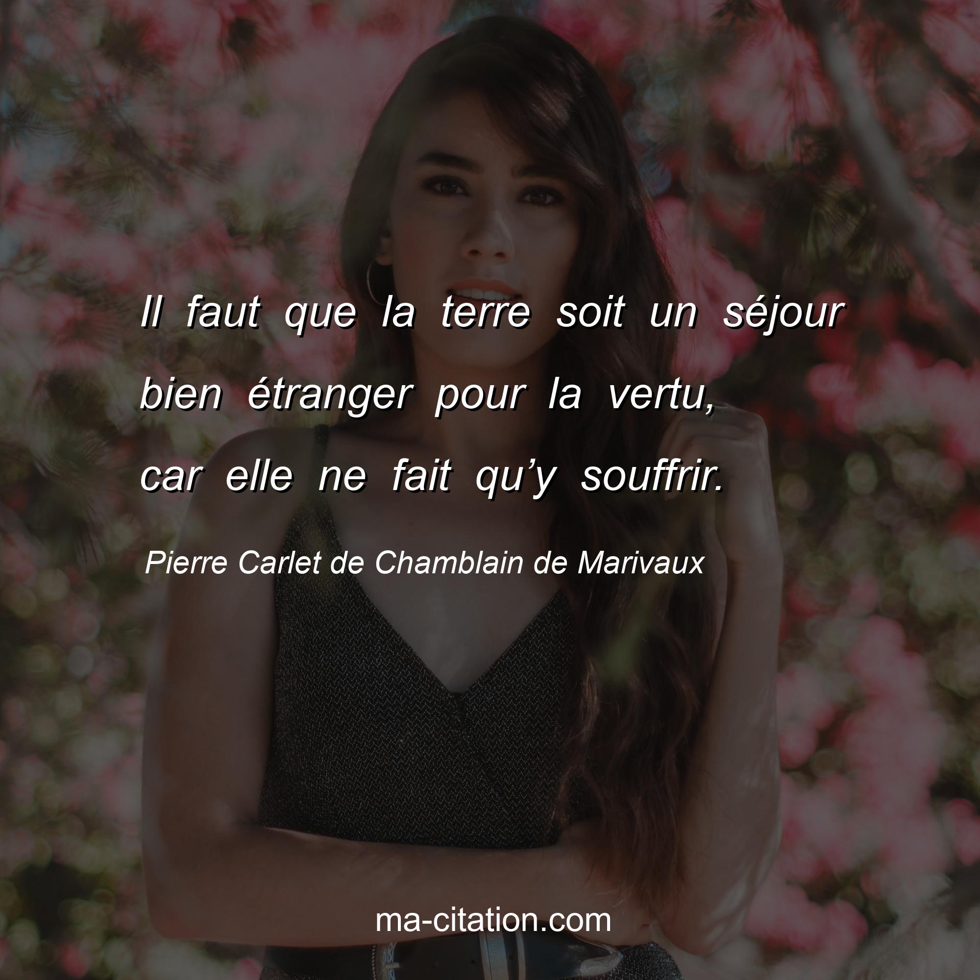 Citation sur la vie de Pierre Carlet de Chamblain de Marivaux :Il faut que la terre soit un séjour bien étranger pour la vertu, car elle ne fait qu’y souffrir.