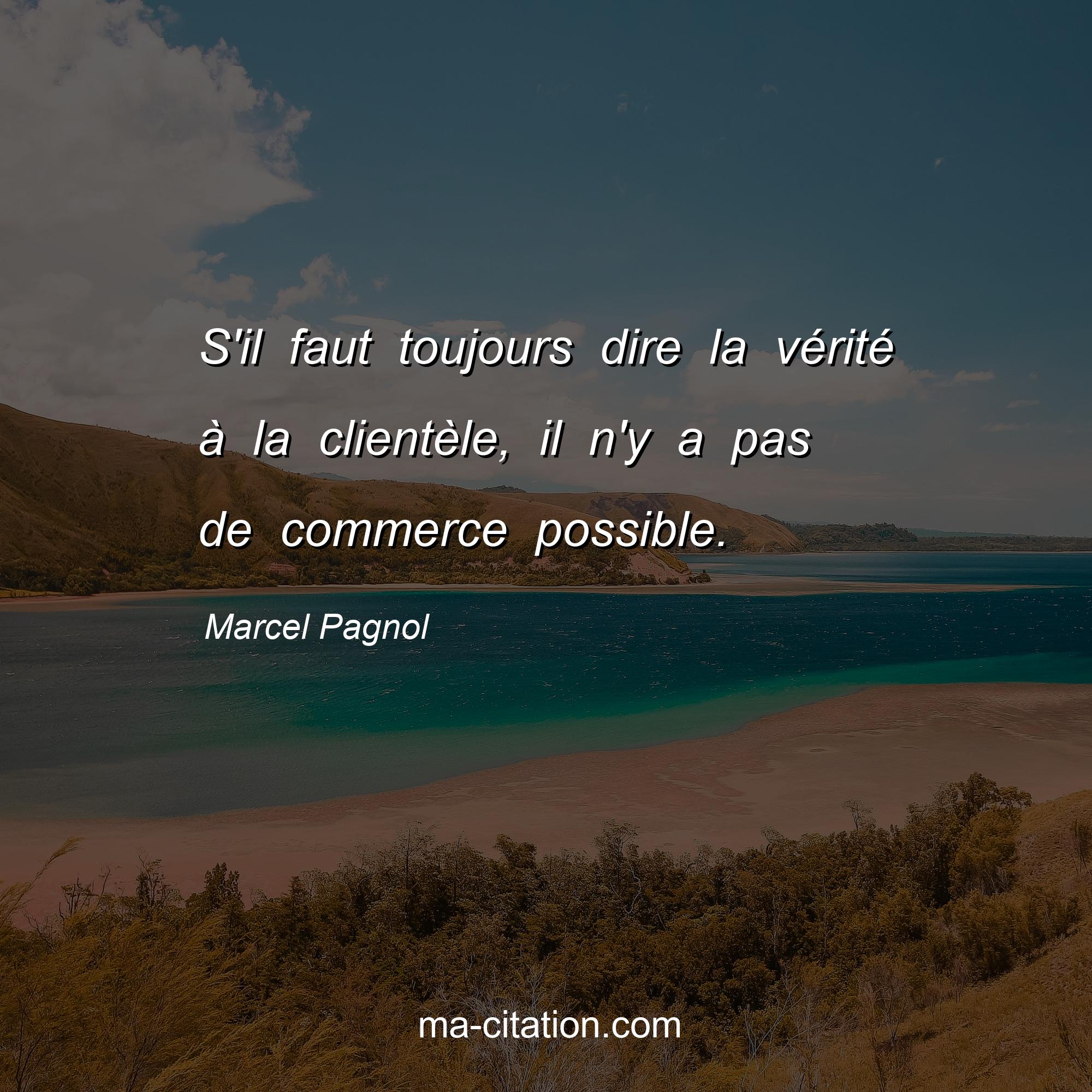 Citation sur la vie de Marcel Pagnol :S'il faut toujours dire la vérité à la clientèle, il n'y a pas de commerce possible.