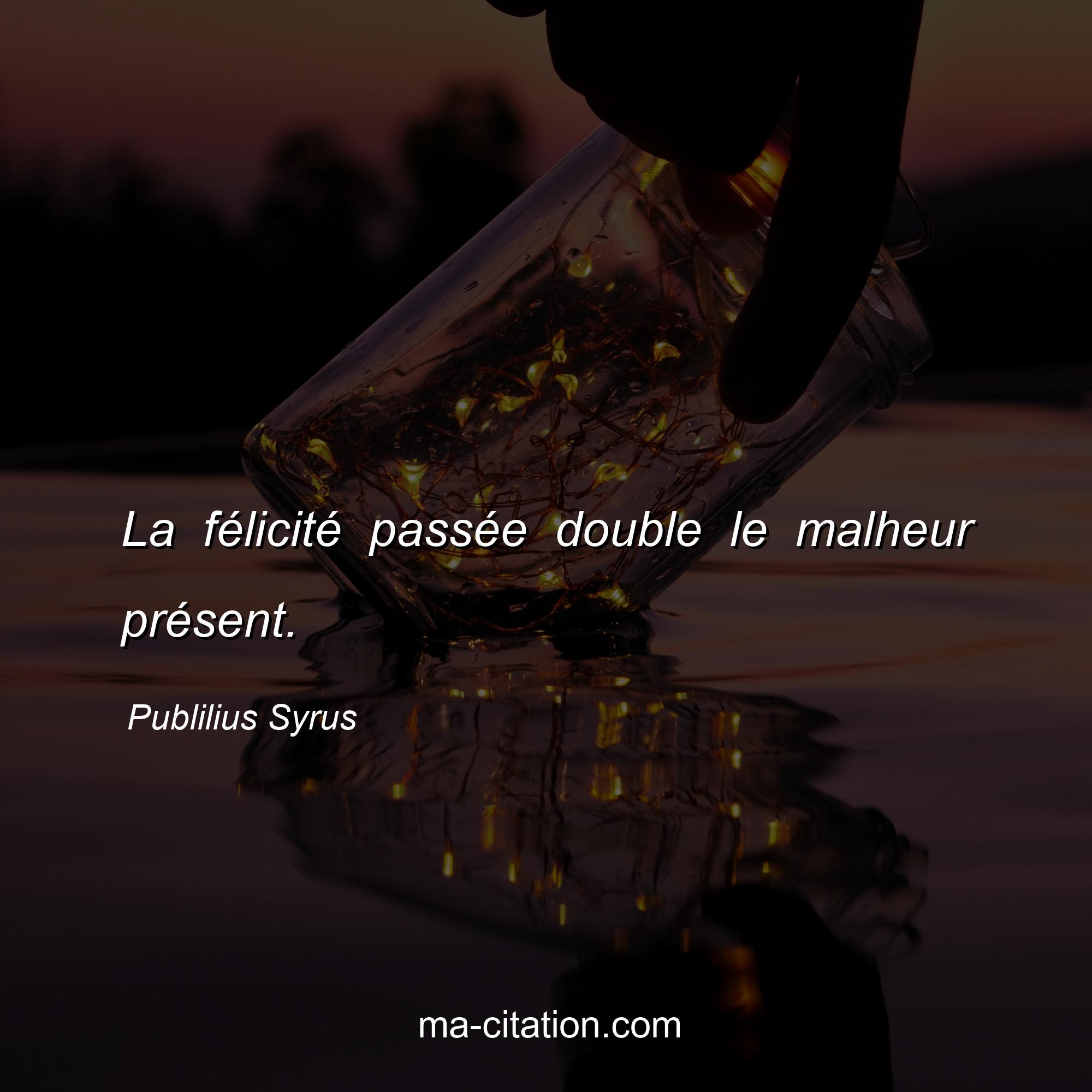 Citation sur la vie de Publilius Syrus :La félicité passée double le malheur présent.