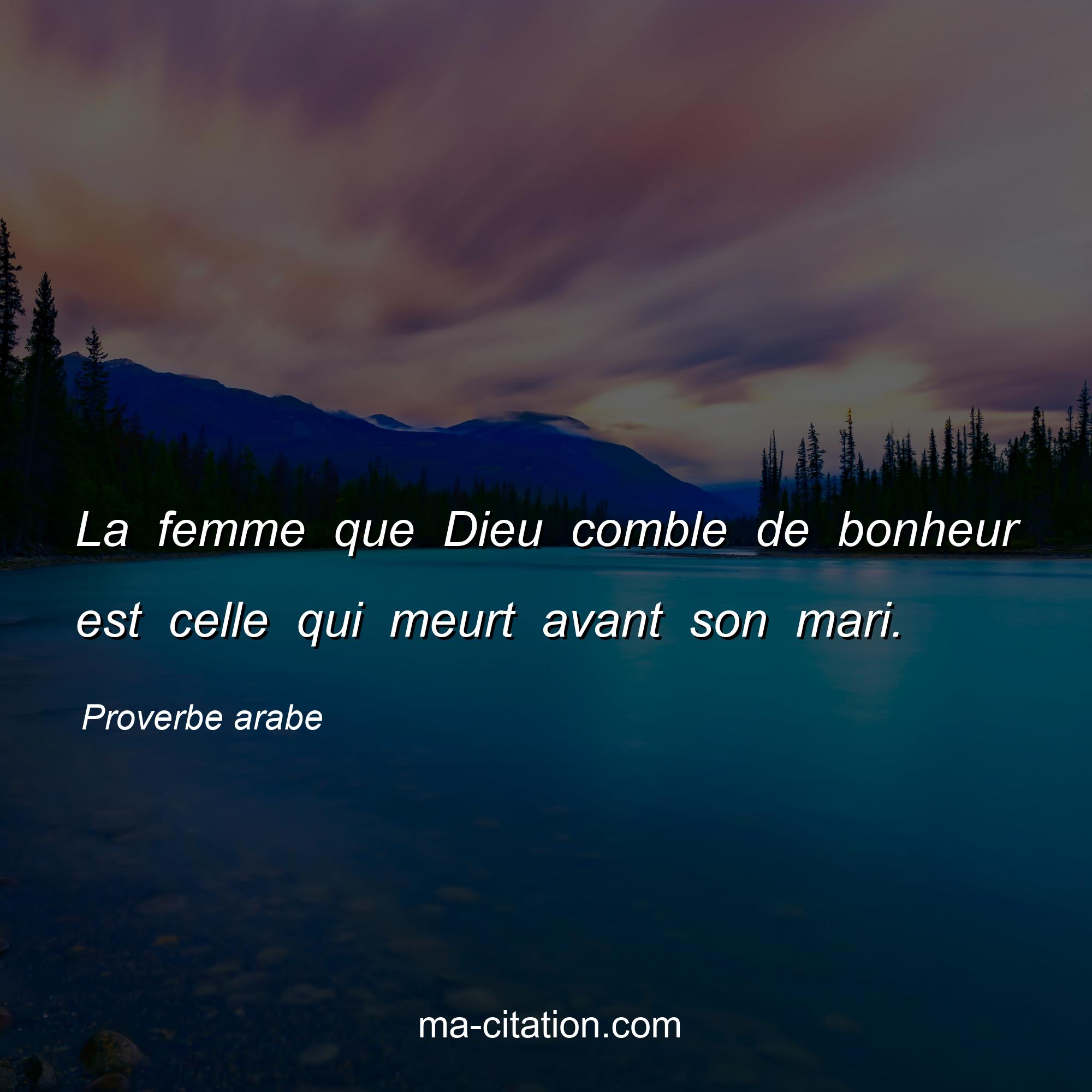 Proverbe arabe sur la vie :La femme que Dieu comble de bonheur est celle qui meurt avant son mari.