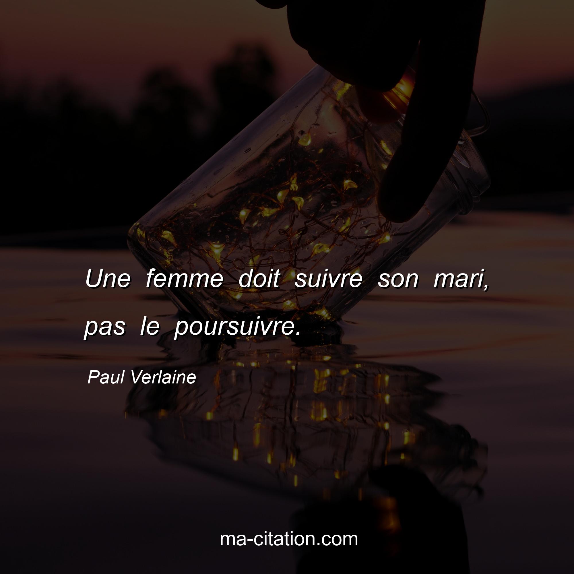Citation sur la vie de Paul Verlaine :Une femme doit suivre son mari, pas le poursuivre.