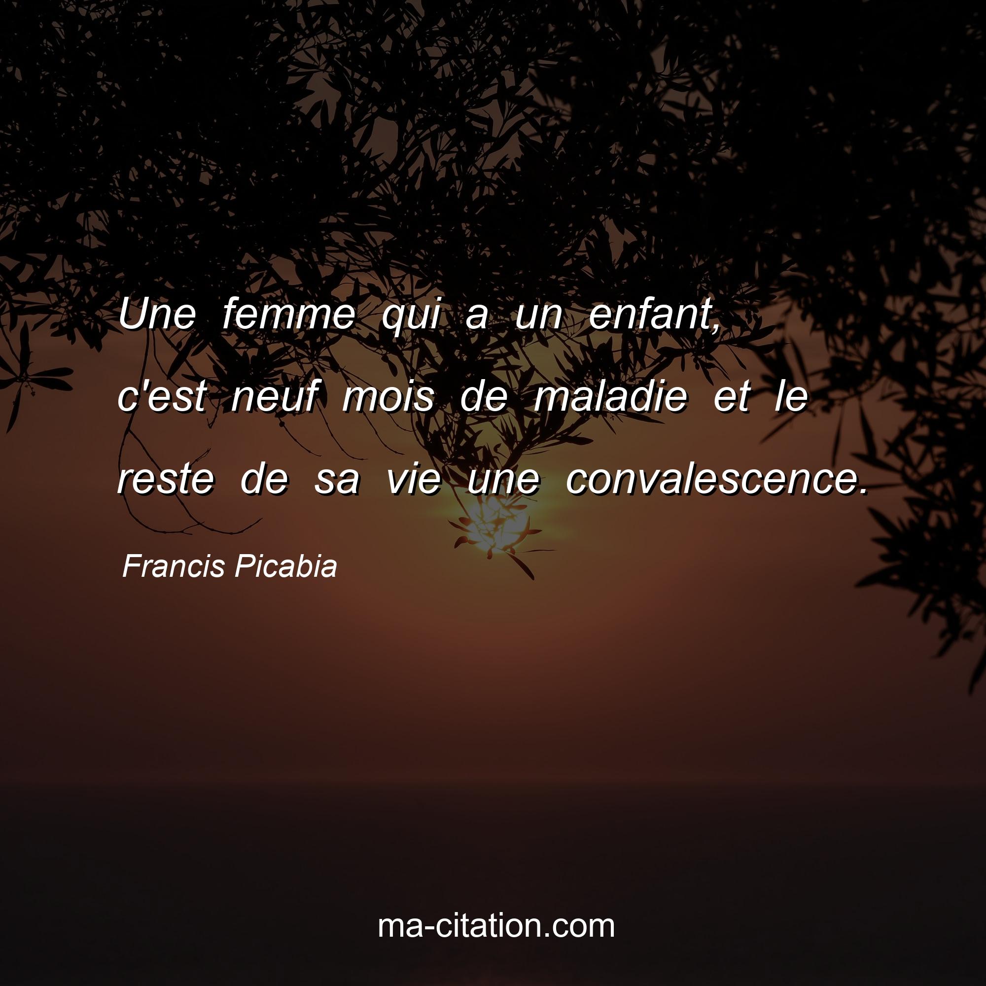 Citation sur la vie de Francis Picabia :Une femme qui a un enfant, c'est neuf mois de maladie et le reste de sa vie une convalescence.