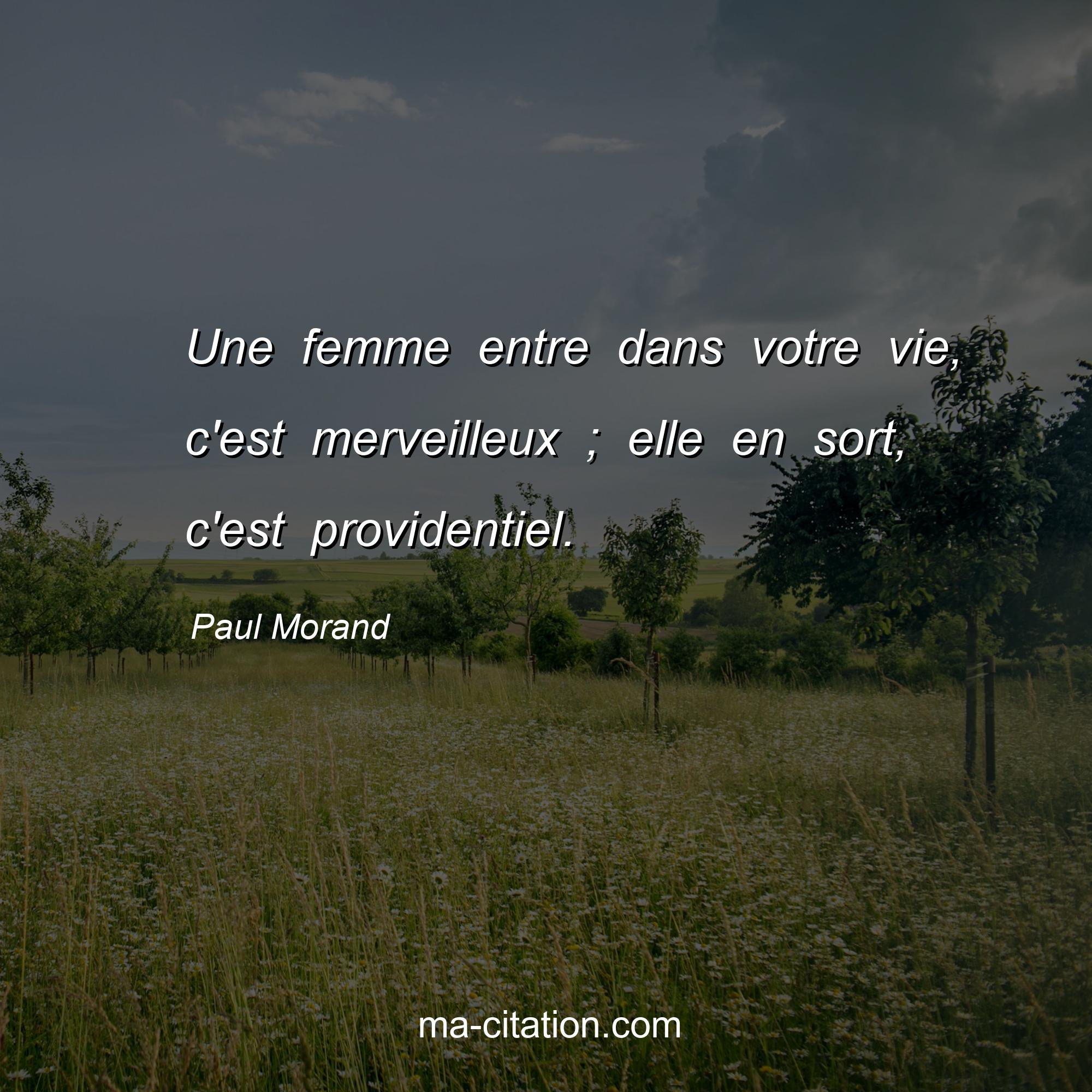 Citation sur la vie de Paul Morand :Une femme entre dans votre vie, c'est merveilleux ; elle en sort, c'est providentiel.