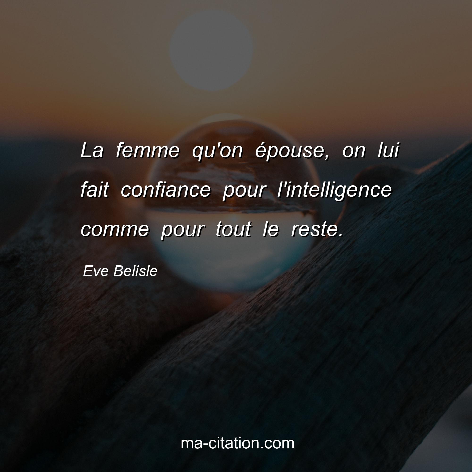 Citation sur la vie d'Eve Belisle :La femme qu'on épouse, on lui fait confiance pour l'intelligence comme pour tout le reste.