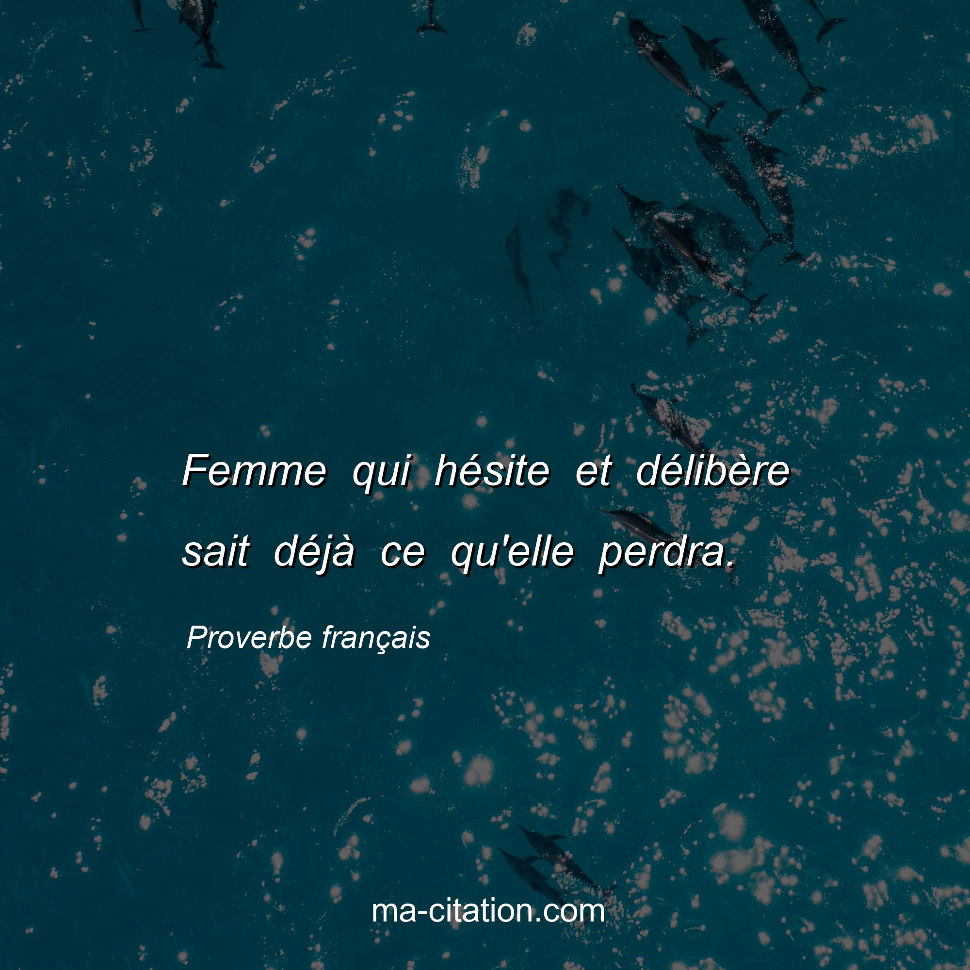 Proverbe français sur la vie :Femme qui hésite et délibère sait déjà ce qu'elle perdra.