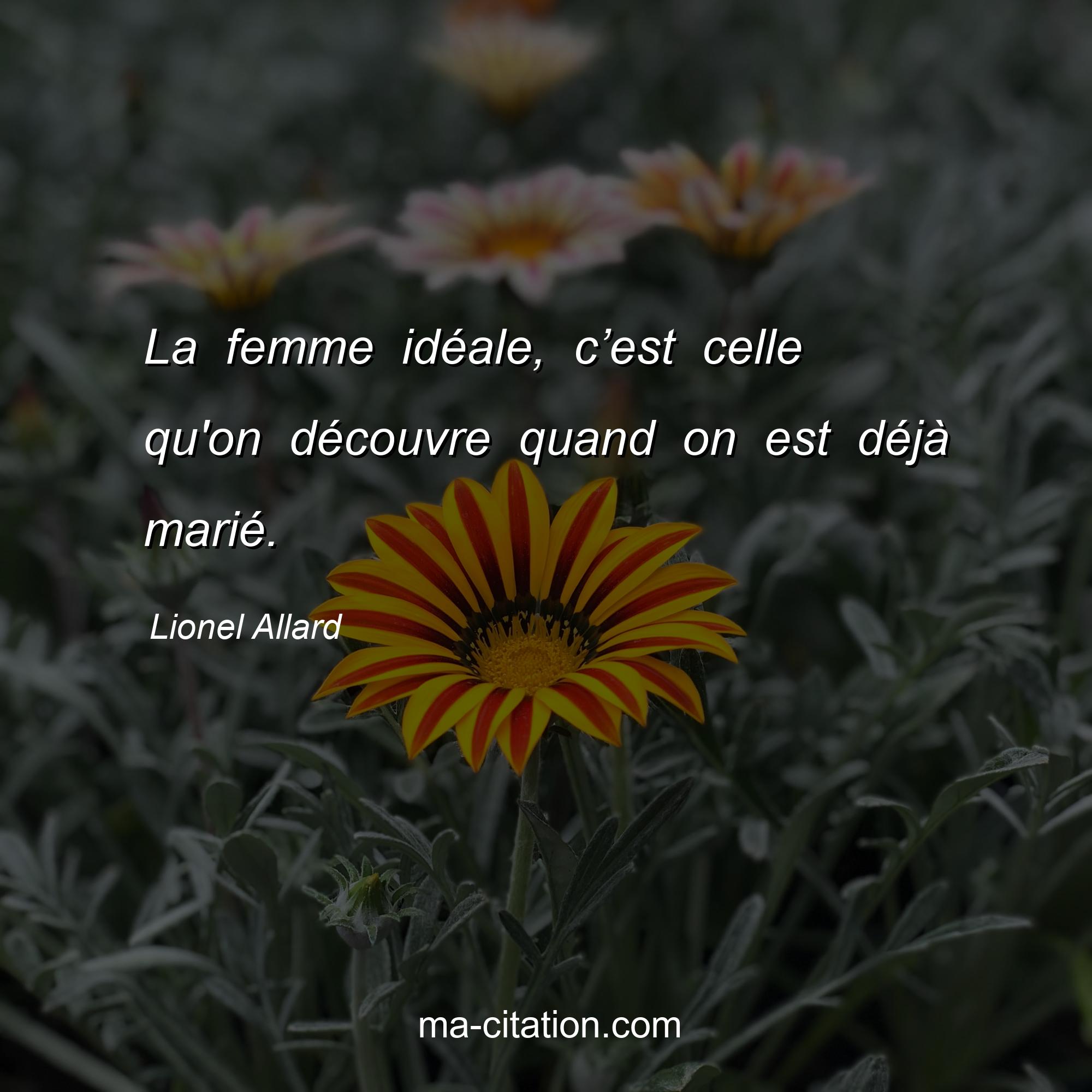 Citation sur la vie de Lionel Allard :La femme idéale, c’est celle qu'on découvre quand on est déjà marié.