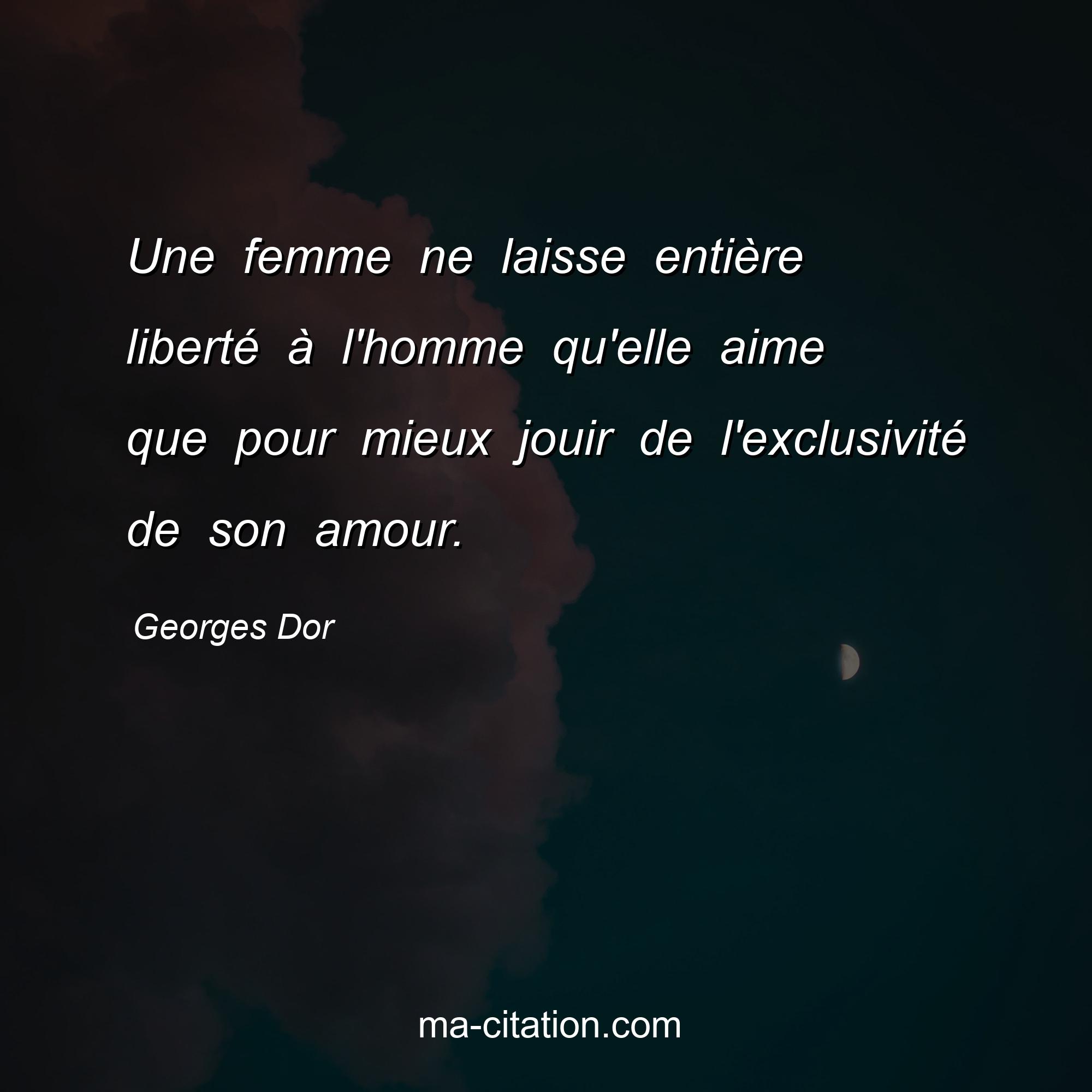 Citation sur la vie de Georges Dor :Une femme ne laisse entière liberté à l'homme qu'elle aime que pour mieux jouir de l'exclusivité de son amour.