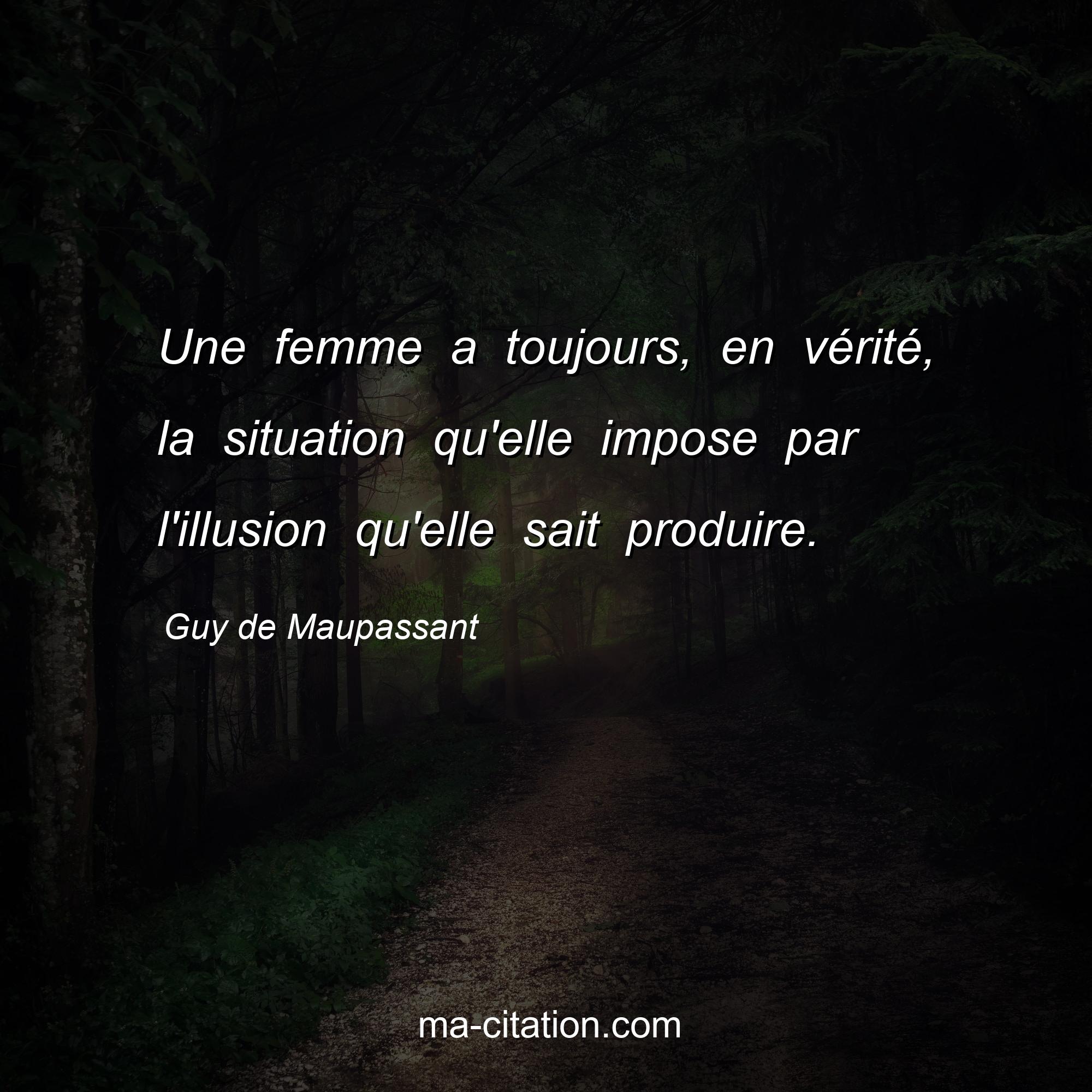Citation sur la vie de Guy de Maupassant :Une femme a toujours, en vérité, la situation qu'elle impose par l'illusion qu'elle sait produire.