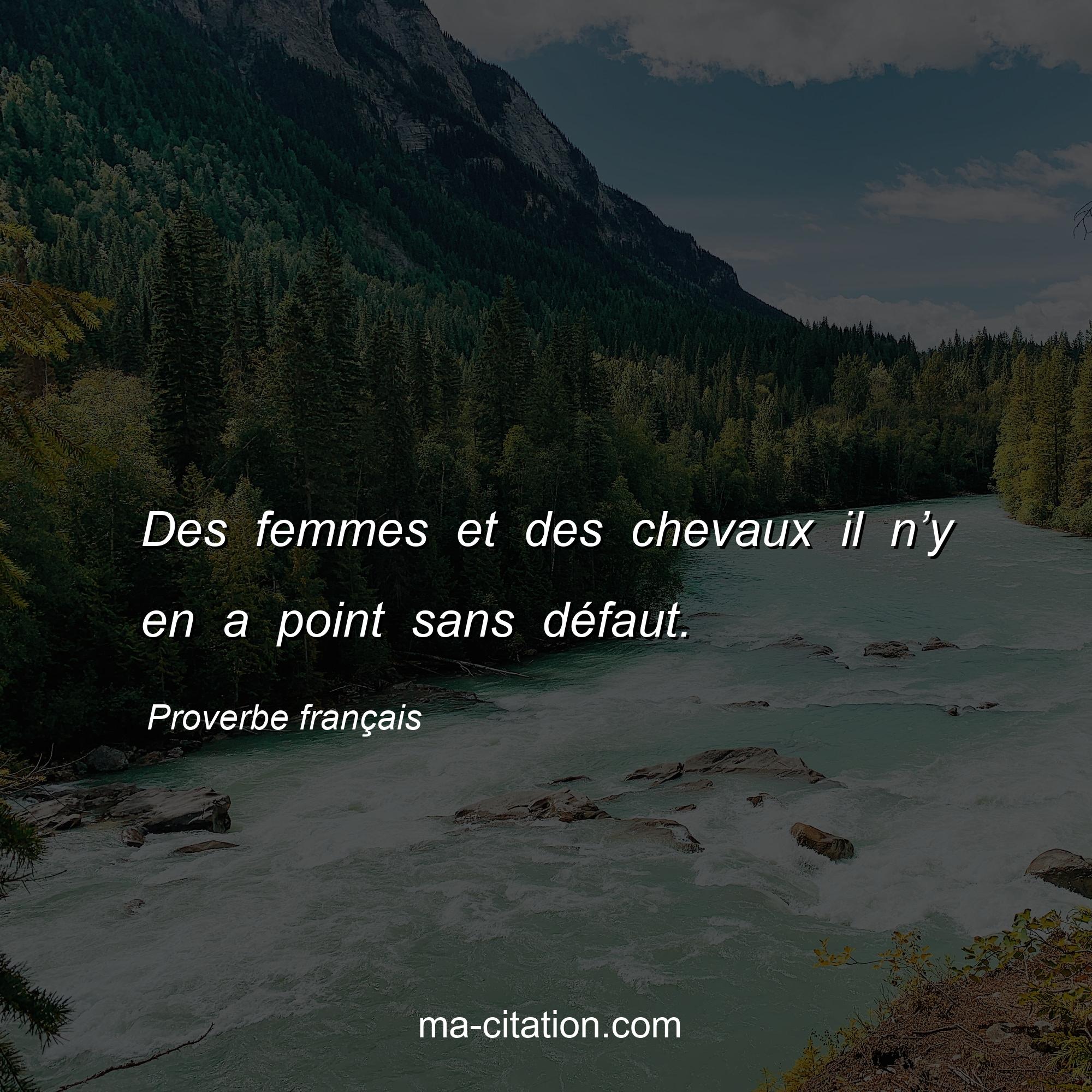 Proverbe français sur la vie :Des femmes et des chevaux il n’y en a point sans défaut.