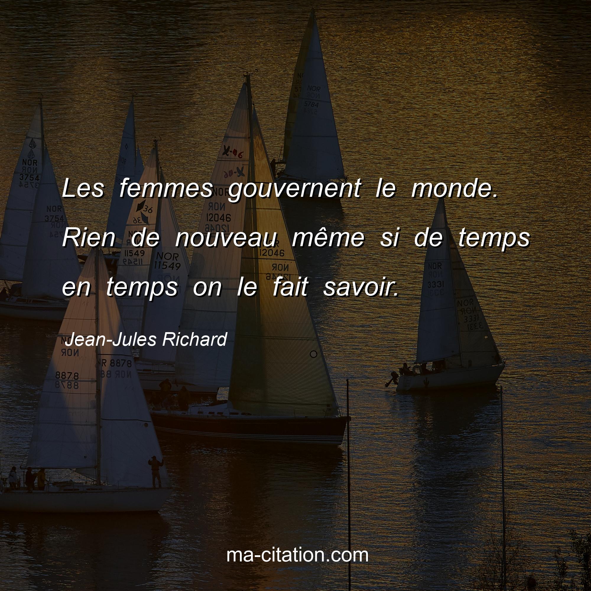 Citation sur la vie de Jean-Jules Richard :Les femmes gouvernent le monde. Rien de nouveau même si de temps en temps on le fait savoir.